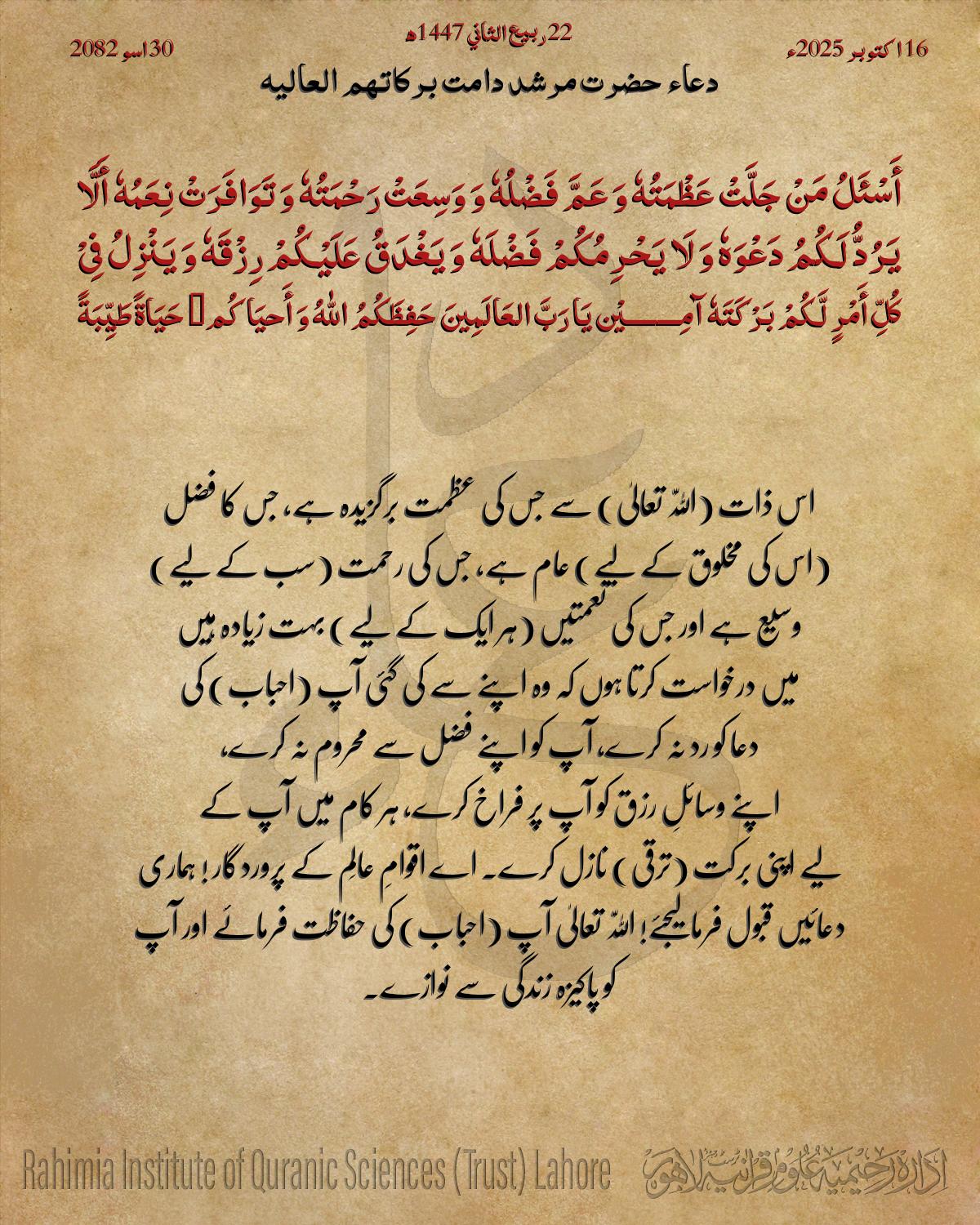 میں درخواست کرتا ہوں کہ وہ اپنے سے کی گئی آپ (احباب) کی دعا کو رد نہ کرے،
