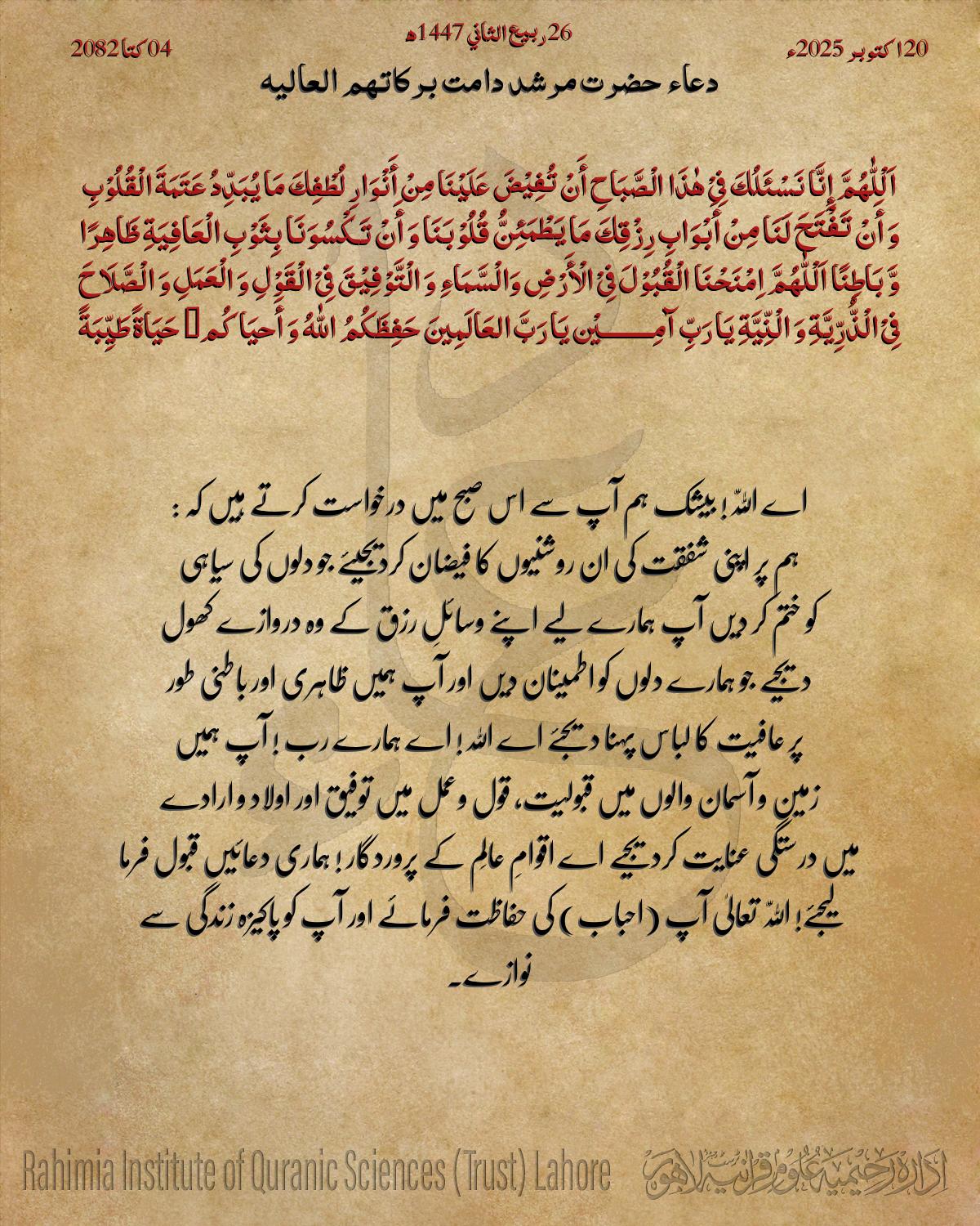 ہم پر اپنی شفقت کی ان روشنیوں کا فیضان کردیجیۓ جو دلوں کی سیاہی کو ختم کر دیں