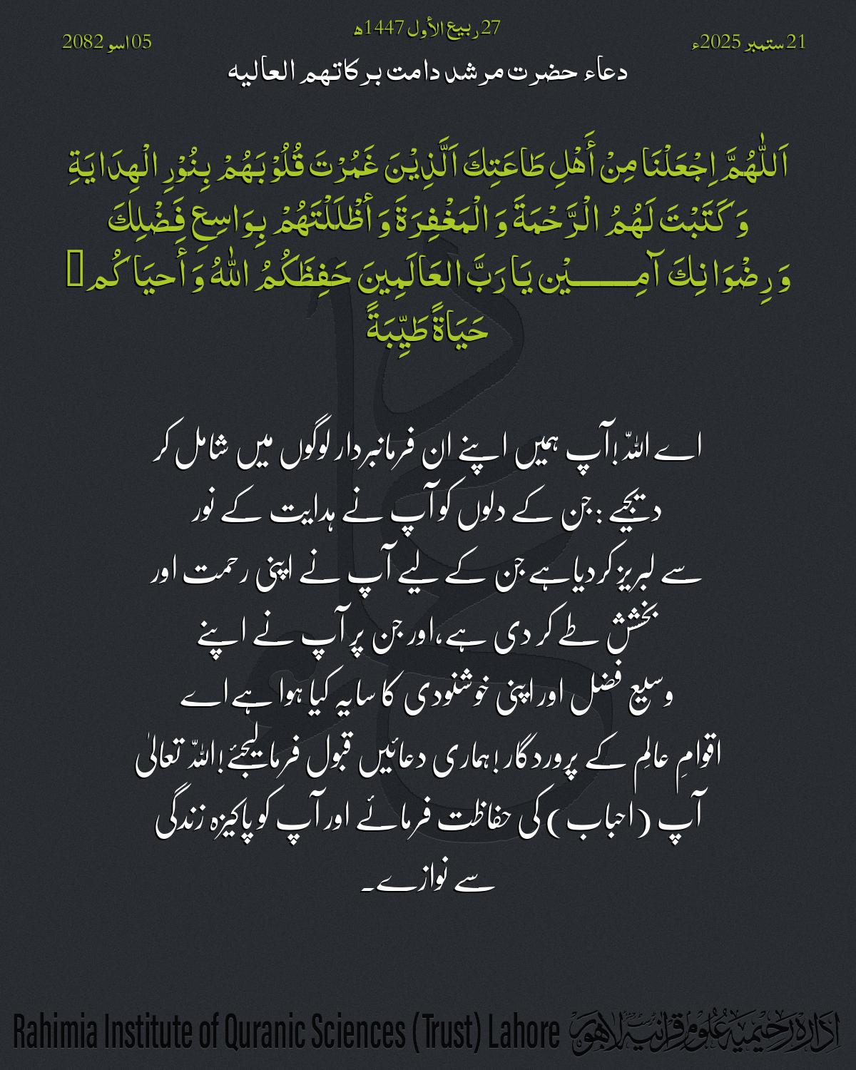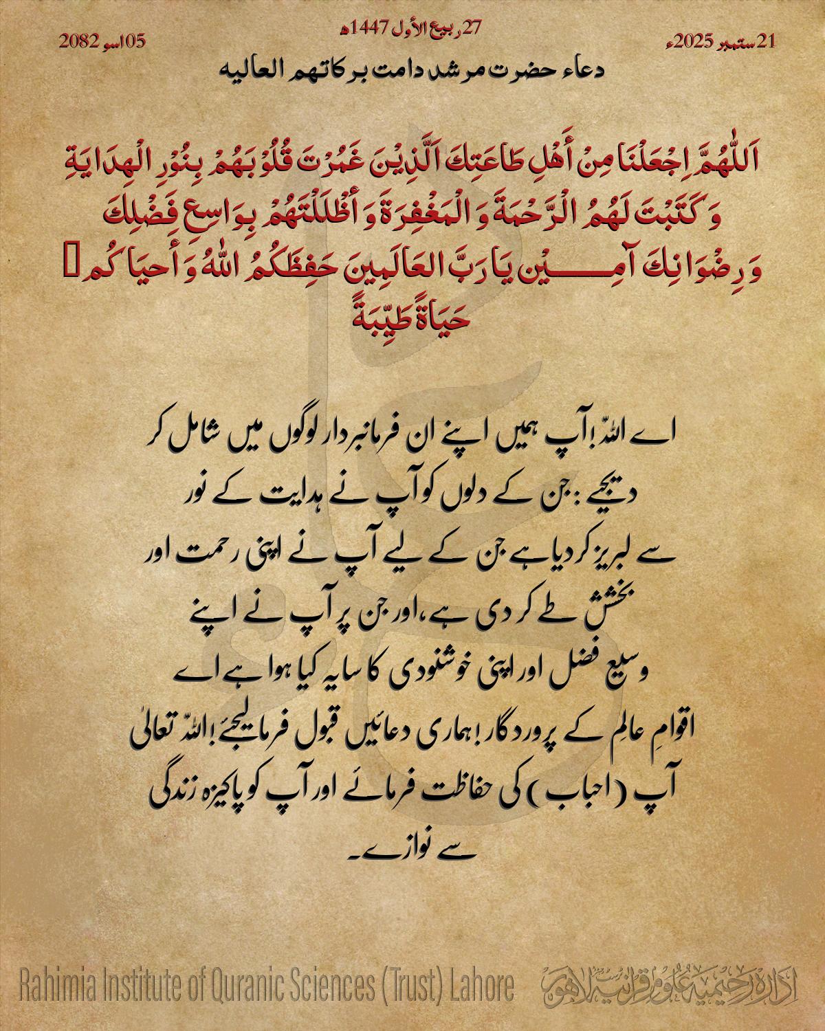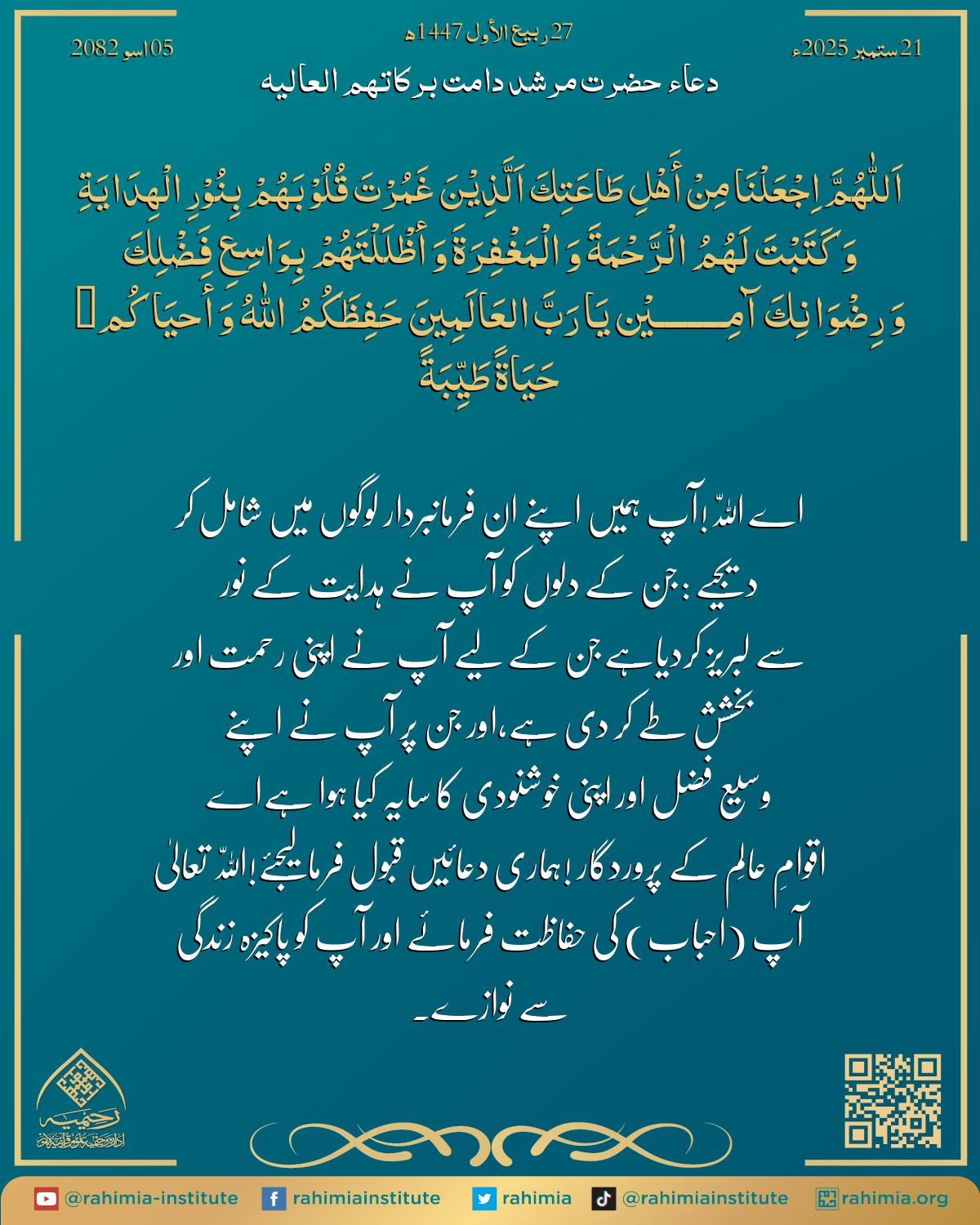 اِجْعَلْنَا مِنْ أَھْلِ طَاعَتِكَ اَلَّذِیْنَ غَمُرْتَ قُلُوْبَھُمْ بِنُوْرِ الْھِدَایَةِ