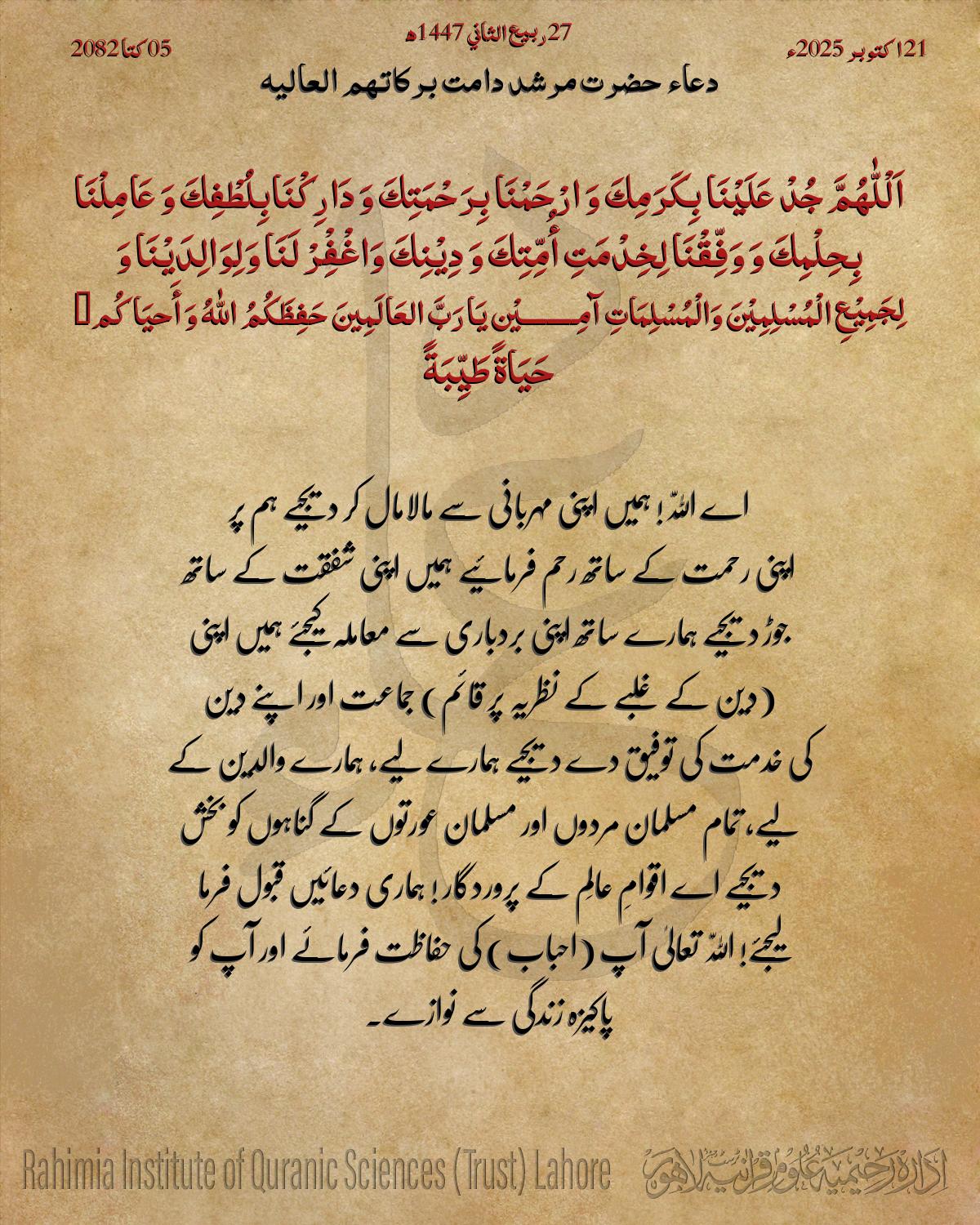 اللّٰہ تعالیٰ آپ (احباب) کی حفاظت فرمائے اور آپ کو پاکیزہ زندگی سے نوازے۔