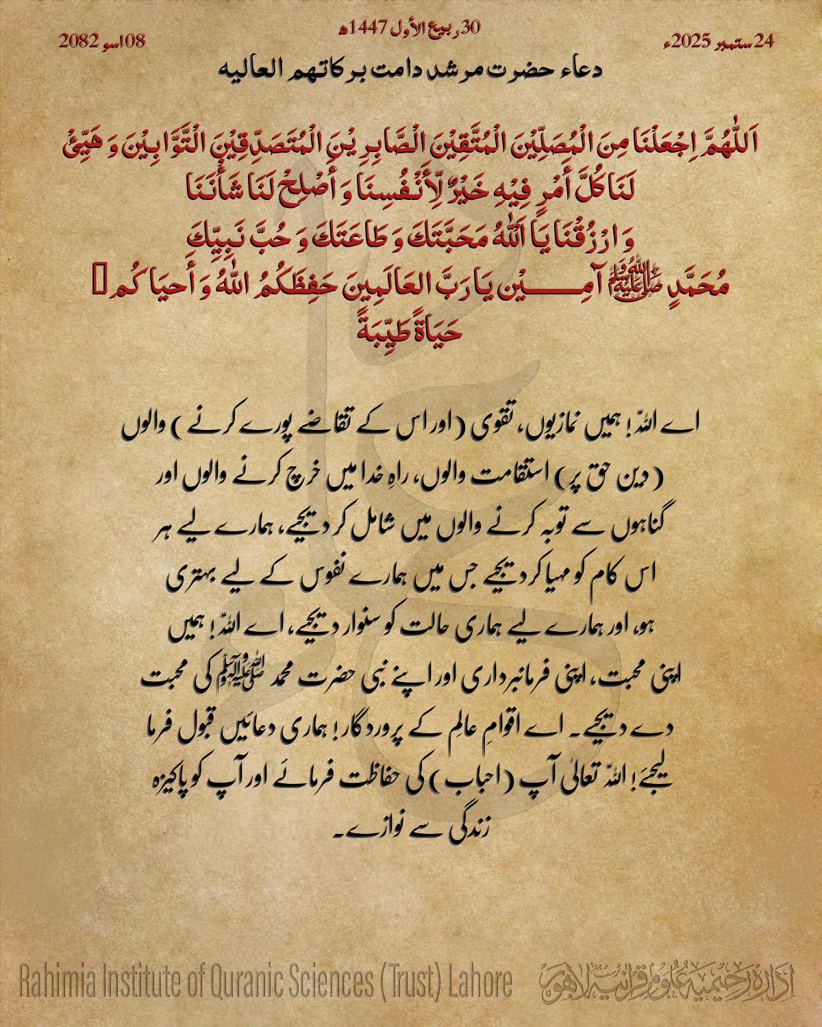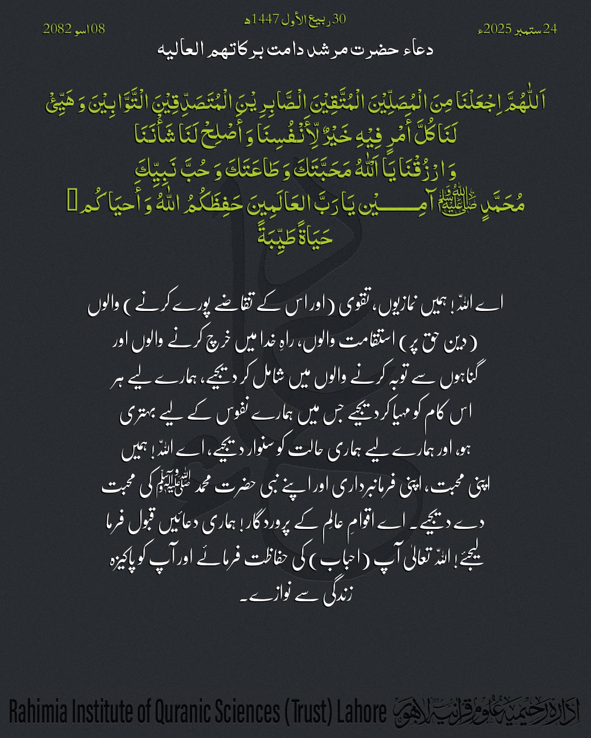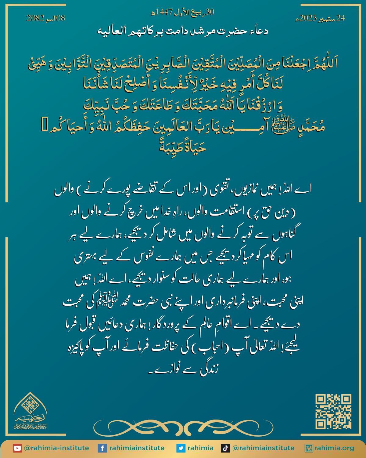 اِجْعَلْنَا مِنَ الْمُصَلِّیْنَ الْمُتَّقِیْنَ الْصَّابِرِیْنَ الْمُتَصَدِّقِیْنَ الْتَّوَّابِیْنَ