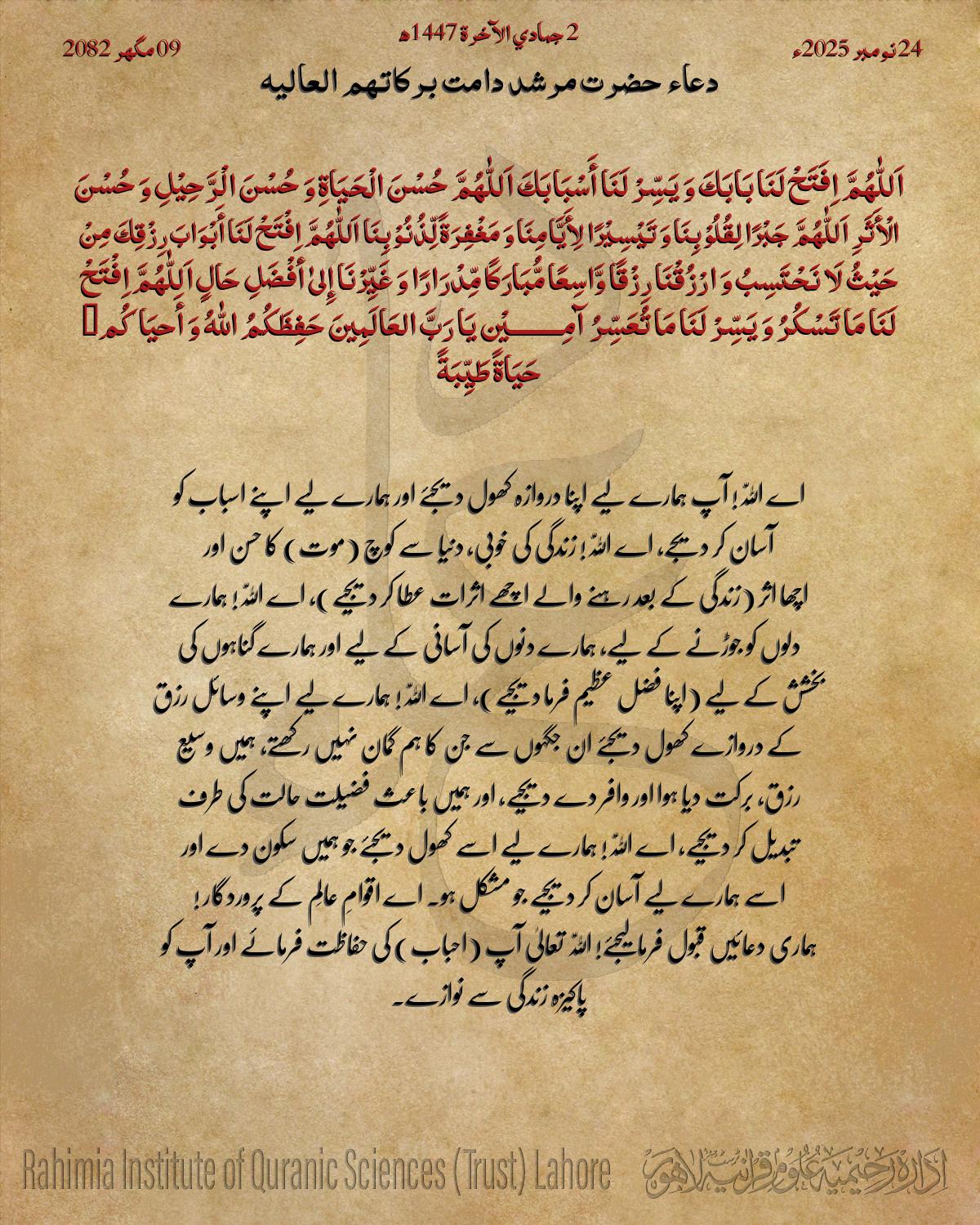 جَبْرًا لِقُلُوْبِنَا وَ تَیْسِیْرًا لِأَیَّامِنَا وَ مَغْفِرَةً لِّذُنُوْبِنَا