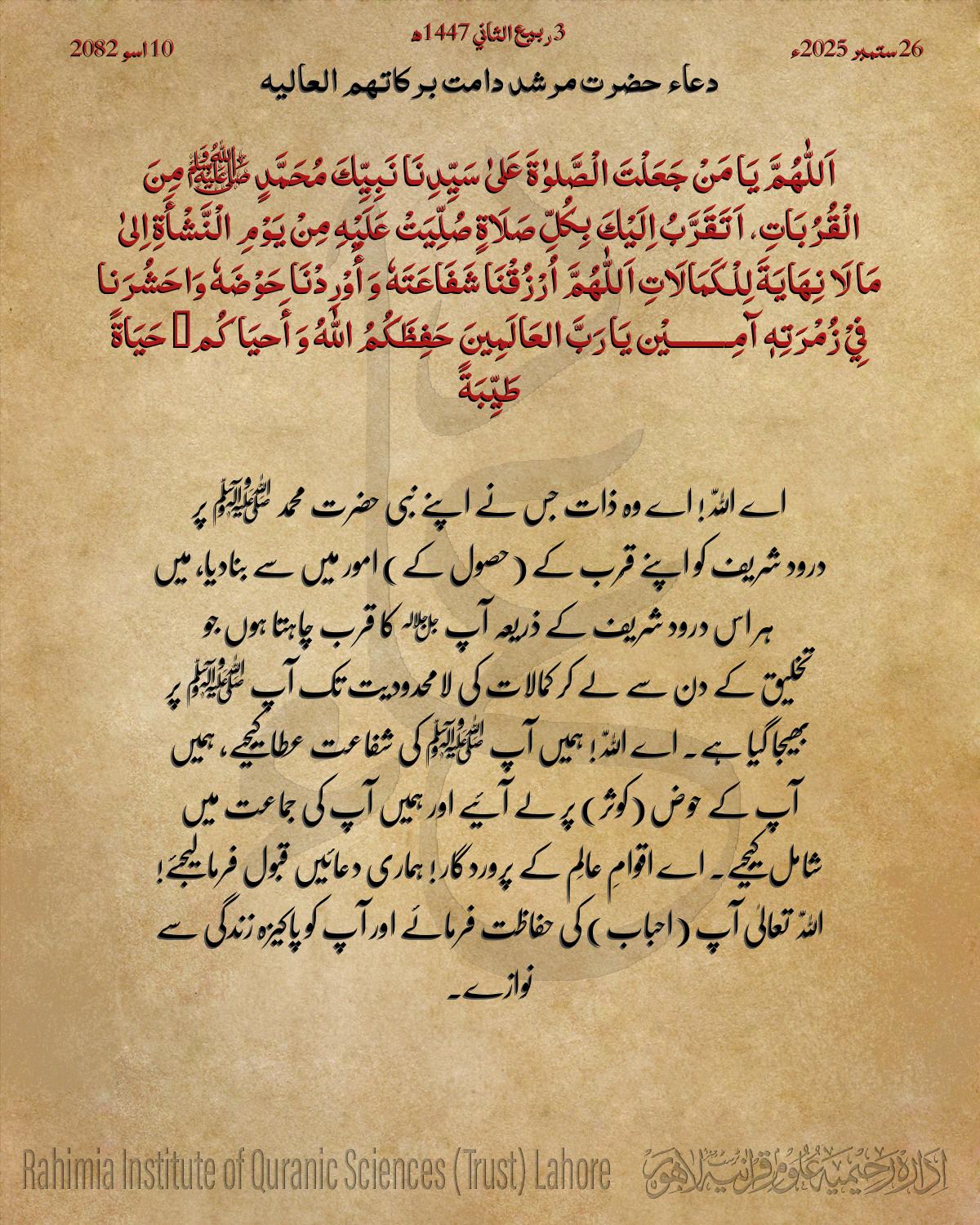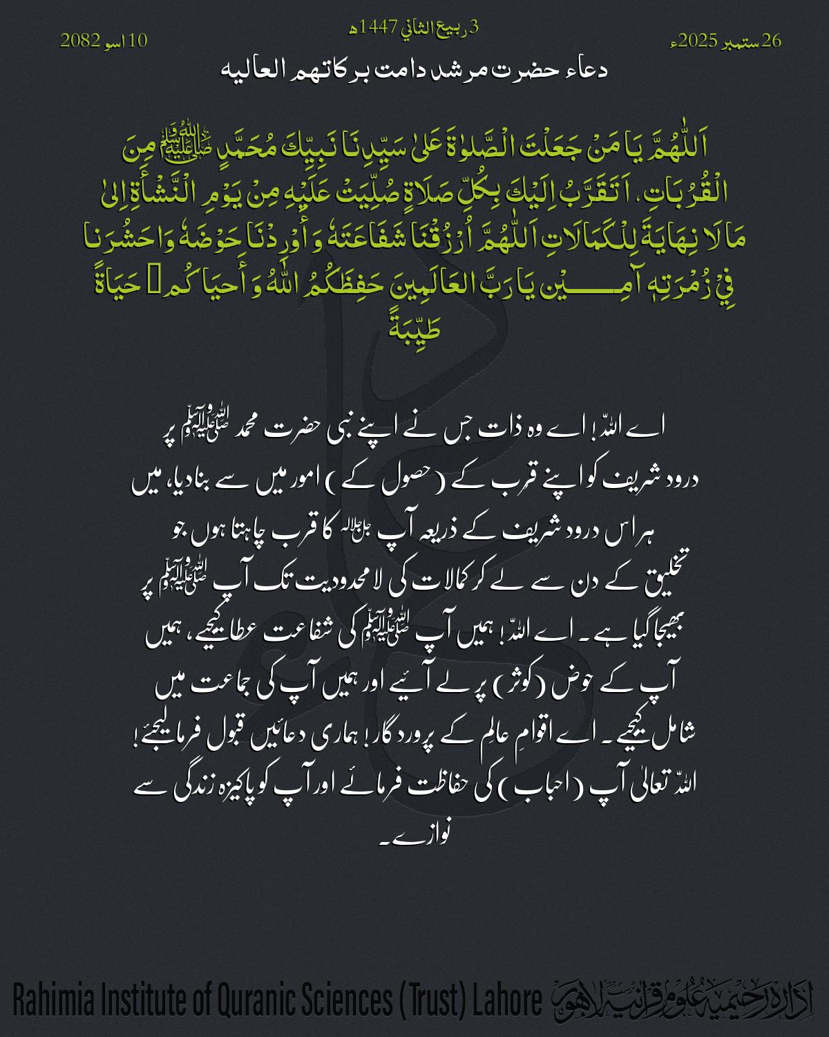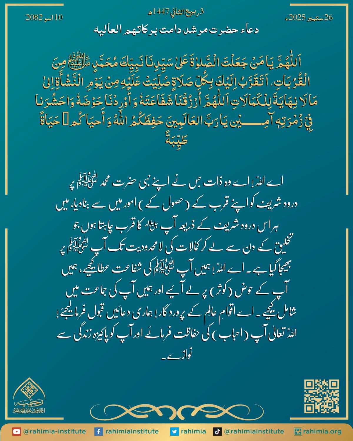 یَا مَنْ جَعَلْتَ الْصَّلوٰةَ عَلیٰ سَیِّدِنَا نَبِیِّكَ مُحَمَّدٍ ﷺ مِنَ الْقُرُبَاتِ،