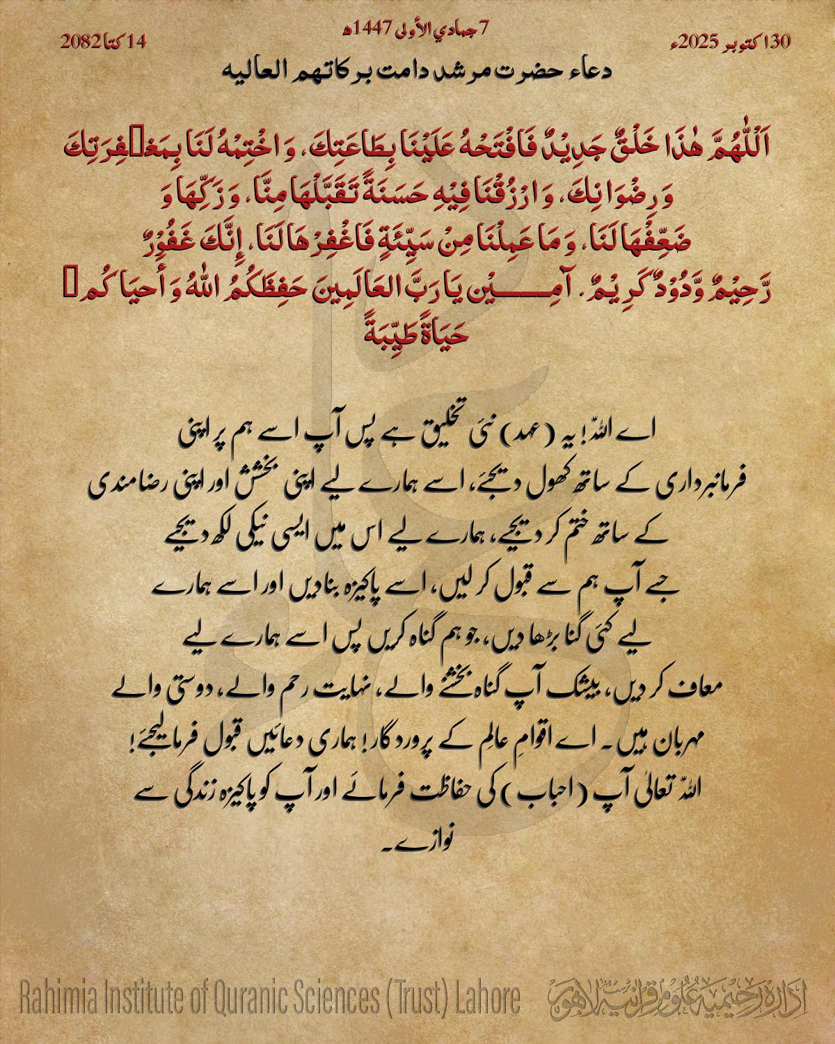 اللّٰہ تعالیٰ آپ (احباب) کی حفاظت فرمائے اور آپ کو پاکیزہ زندگی سے نوازے۔