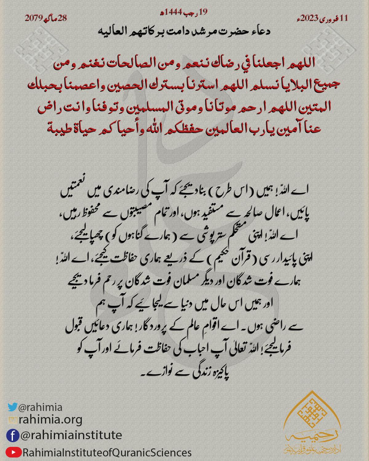 اللهم اجعلنا في رضاك ننعم ومن الصالحات نغنم ومن جميع البلايا نسلم اللهم استرنا بسترك الحصين واعصمنا بحبلك المتين اللهم ا…