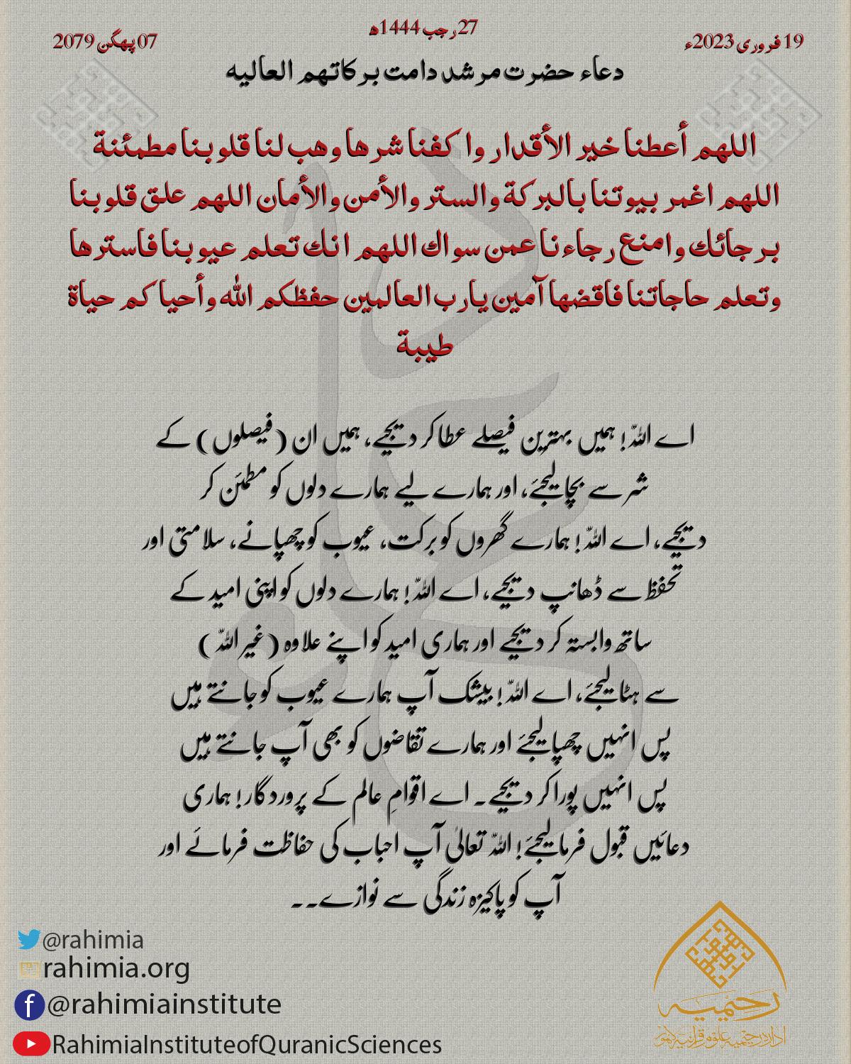 اللهم ارزقنا سلامة القلب وصفاء المعرفة بك و اجعلنا ممن هواهم تبعا لما جاء به النبي صلى الله عليه وسلم اللهم نسألك خشيتك …