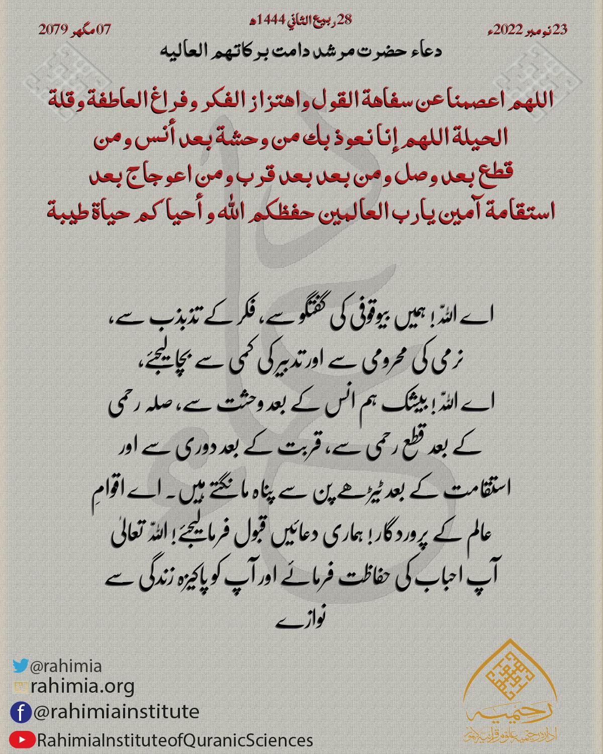 اللهم اعصمنا عن سفاهة القول واهتزاز الفكر وفراغ العاطفة وقلة الحيلة اللهم إنا نعوذ بك من وحشة بعد أنس ومن قطع بعد وصل ومن…