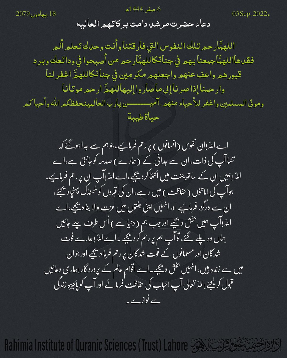 اللهمَّ ارحم تلك النفوس التي فارقتنا وأنت وحدك تعلم ألم فقدها اللهمَّ اجمعنا بهم في جناتك اللهمَّ ارحم من أصبحوا في ودائعك وب…