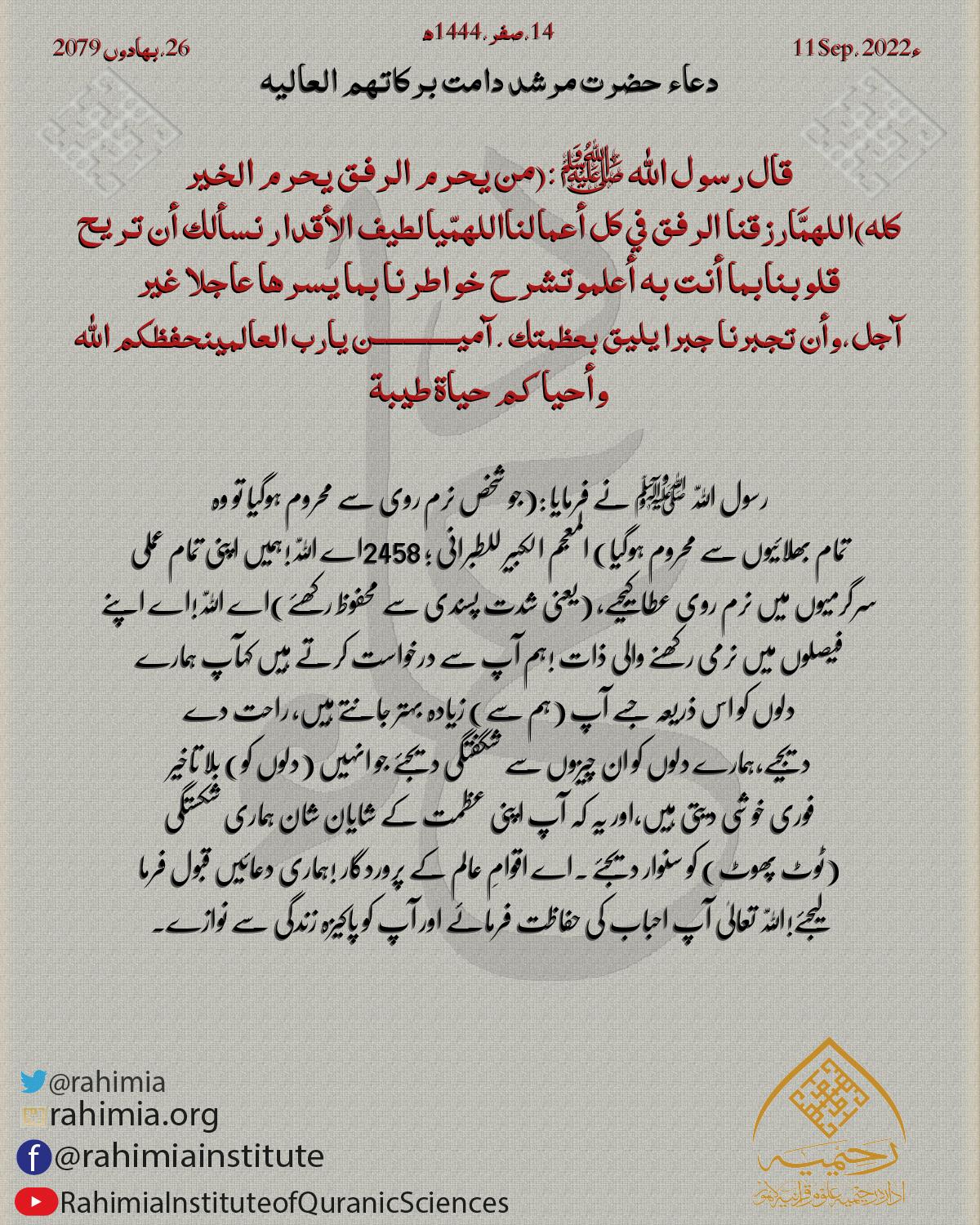 قال رسول الله ﷺ : (من يحرم الرفق يحرم الخير كله ) اللهمَّ ارزقنا الرفق في كل أعمالنا اللهمّ يالطيف الأقدار نسألك أن تريح …