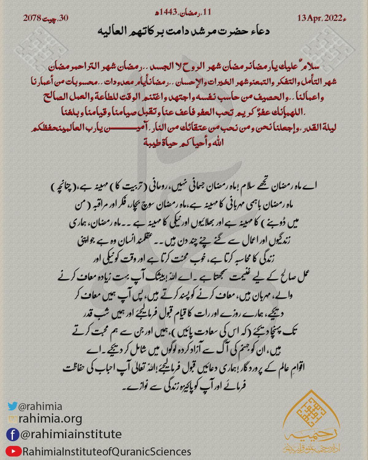 للهم إنا نسألك في اليوم العاشر من أيام الرحمة في رمضان ان تجعلنا من الفائزين المقبولين والمكفولين بذكرك المشمولين …