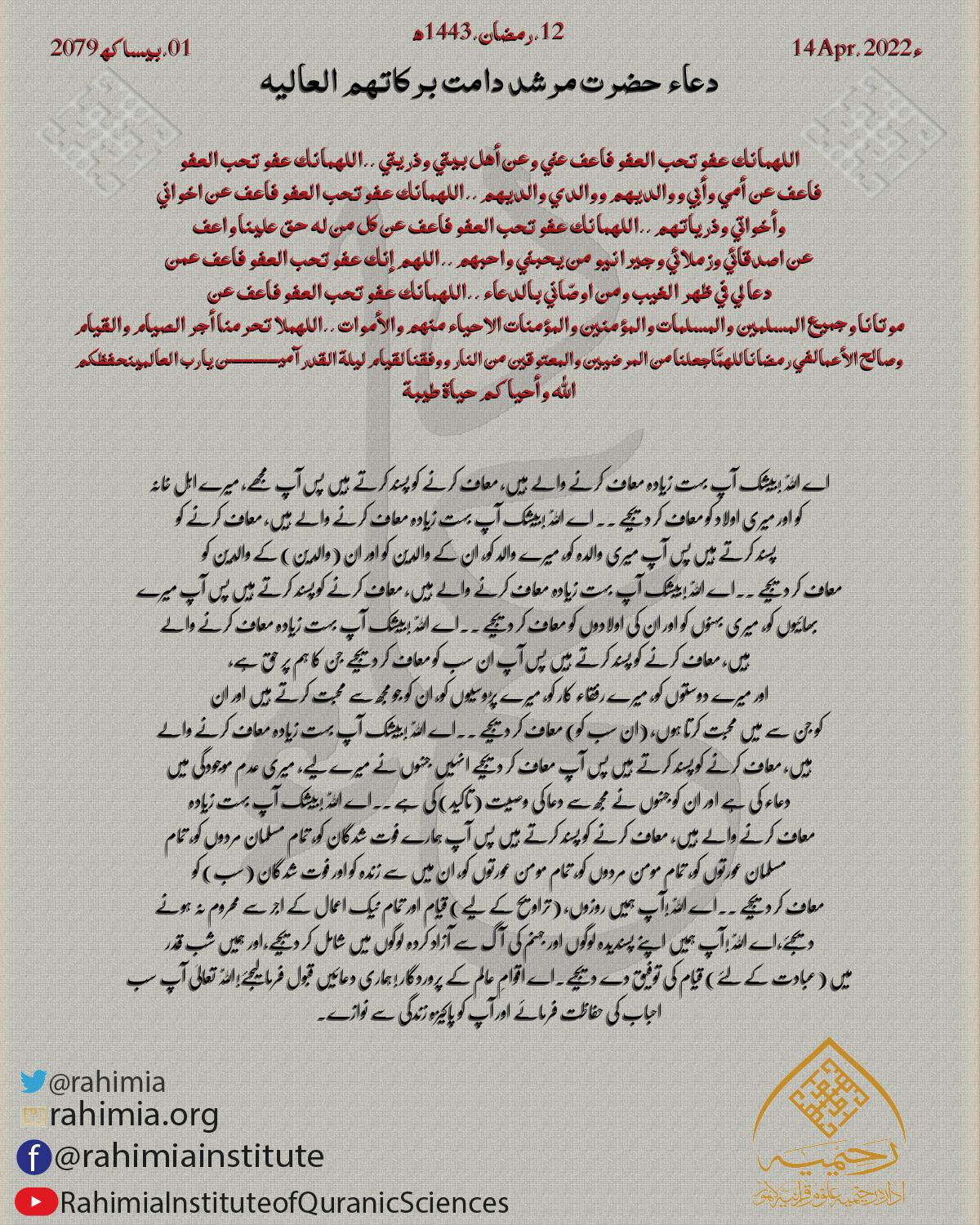 اللهم انك عفو تحب العفو فاعف عني وعن أهل بيتي وذريتي .. اللهم انك عفو تحب العفو فاعف عن أمي وأبي ووالديهم ووالدي والديهم …