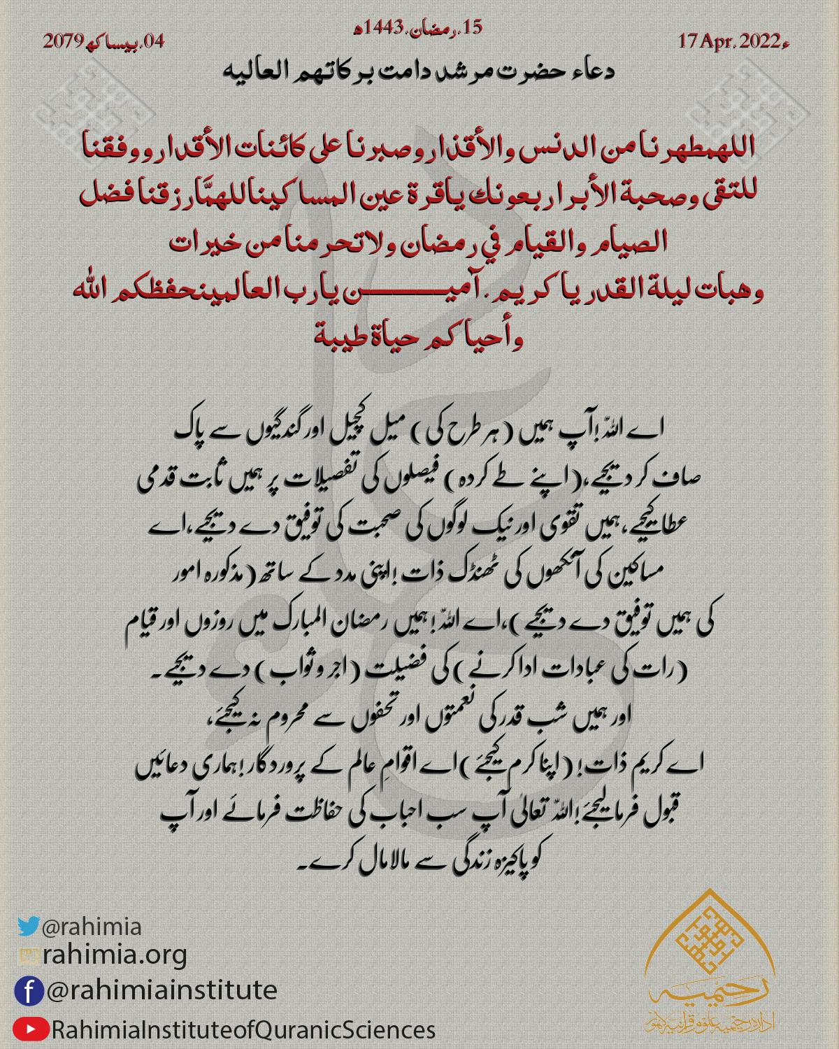 اللهمَّ إنا نسألك أن تجعلنا من التوابين و المتطهرين من العابدين الساجدين و من المسبحين و من اصحاب اليمين في جنات النعيم …