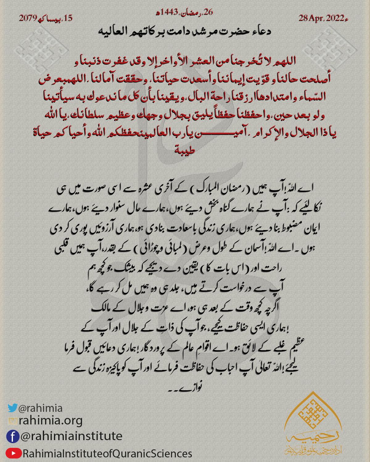 اللهم وقد أقبلت العشر الأواخر، فاكرمنا بنور منك عامر، وقلب سليم طاهر، واجعلنا من عتقائك يا كريم يا قادر. اللهم ارزقنا …