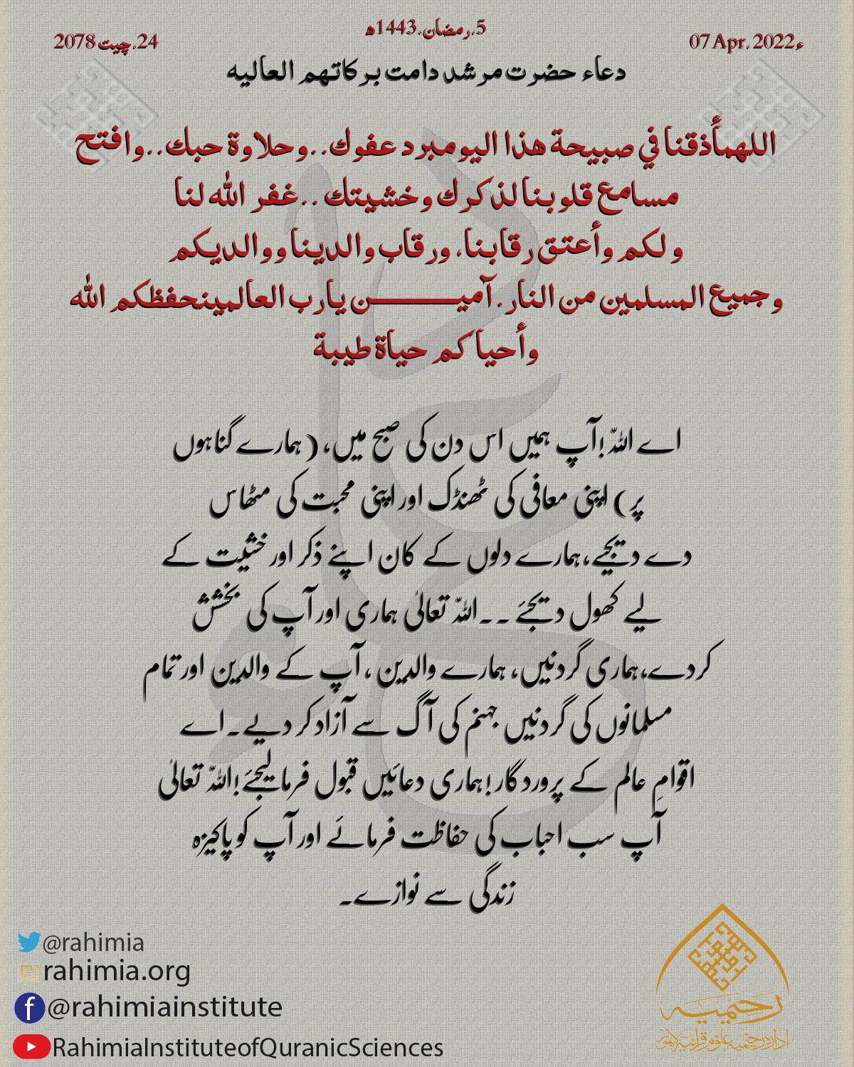 اللهم أذقنا في صبيحة هذا اليوم برد عفوك.. وحلاوة حبك.. وافتح مسامع قلوبنا لذكرك وخشيتك .. غفر الله لنا و لكم وأعتق رق…