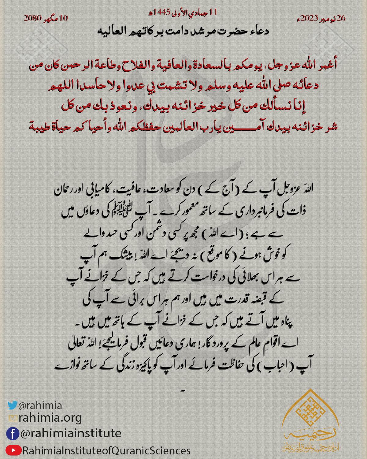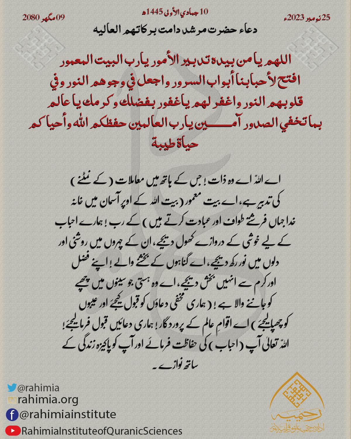 اللهم يا من بيده تدبير الأمور يارب البيت المعمور افتح لأحبابنا أبواب السرور واجعل في وجوهم النور وفي قلوبهم النور واغفر…