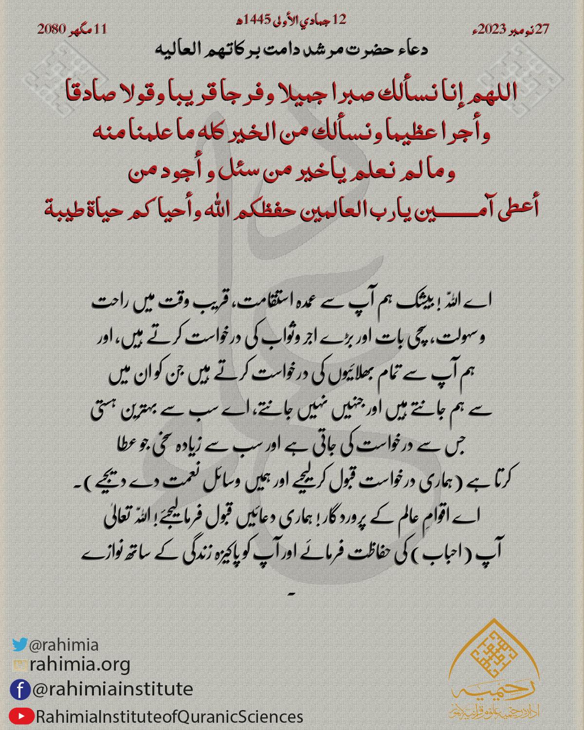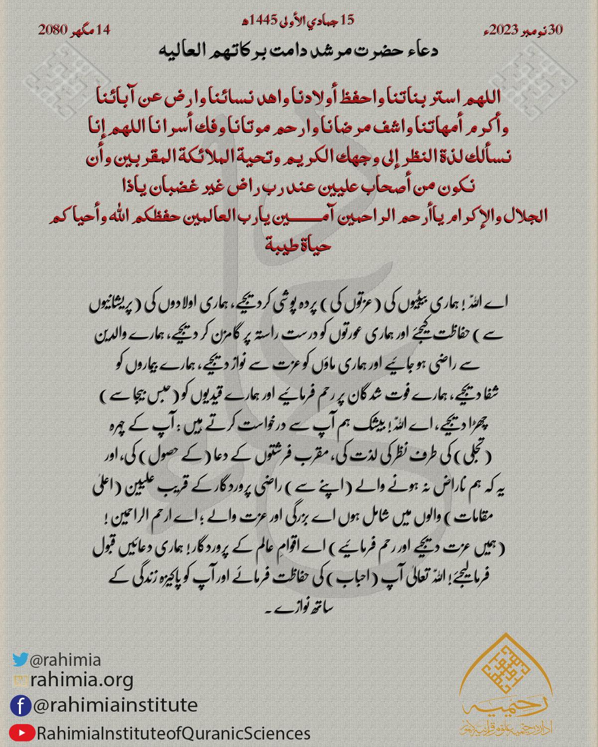 اللهم استر بناتنا واحفظ أولادنا واهد نسائنا وارض عن آبائنا وأكرم أمهاتنا واشف مرضانا وارحم موتانا وفك أسرانا اللهم إنا …