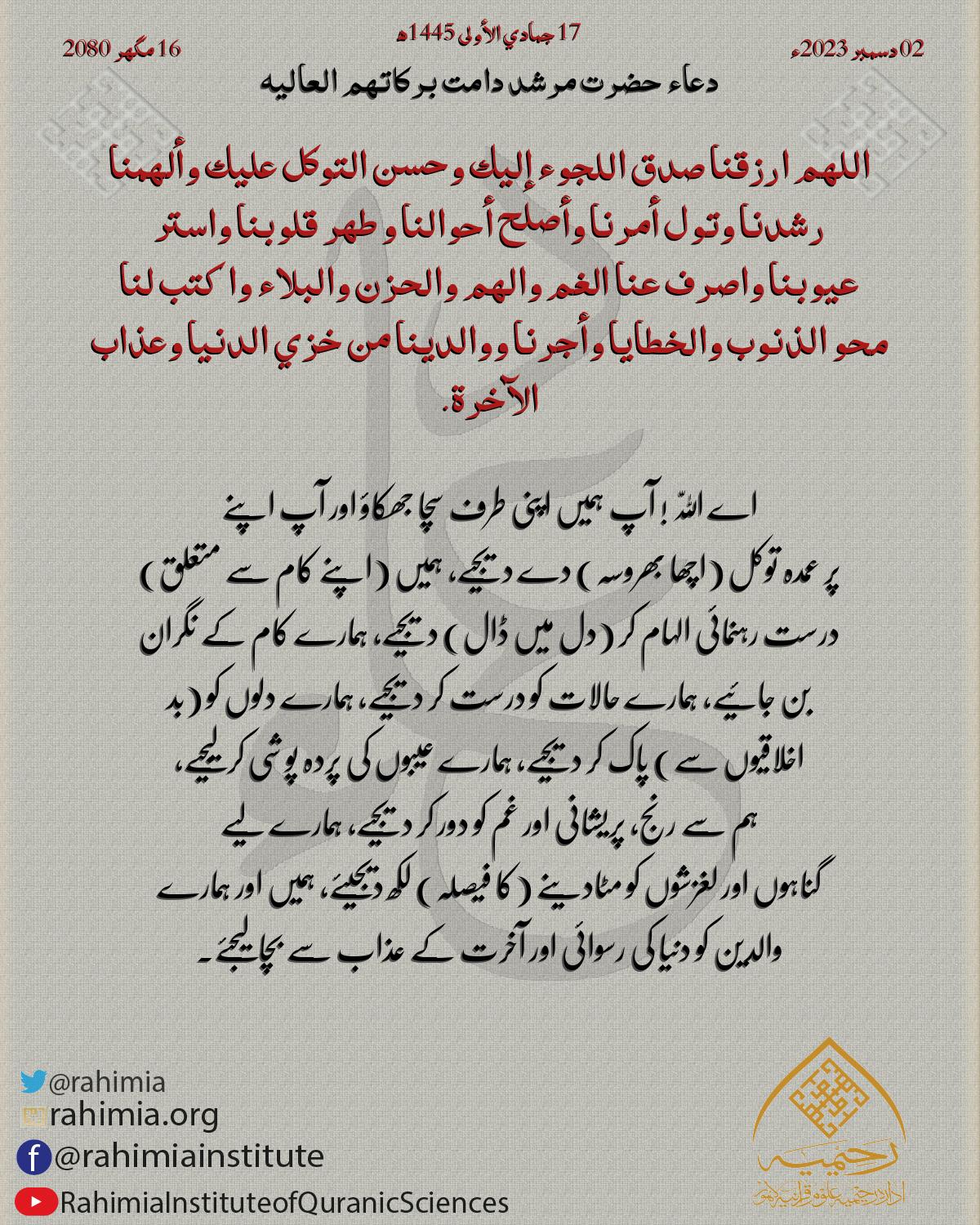 اللهم ارزقنا صدق اللجوء إليك وحسن التوكل عليك وألهمنا رشدنا وتول أمرنا وأصلح أحوالنا و طهر قلوبنا واستر عيوبنا واصر…