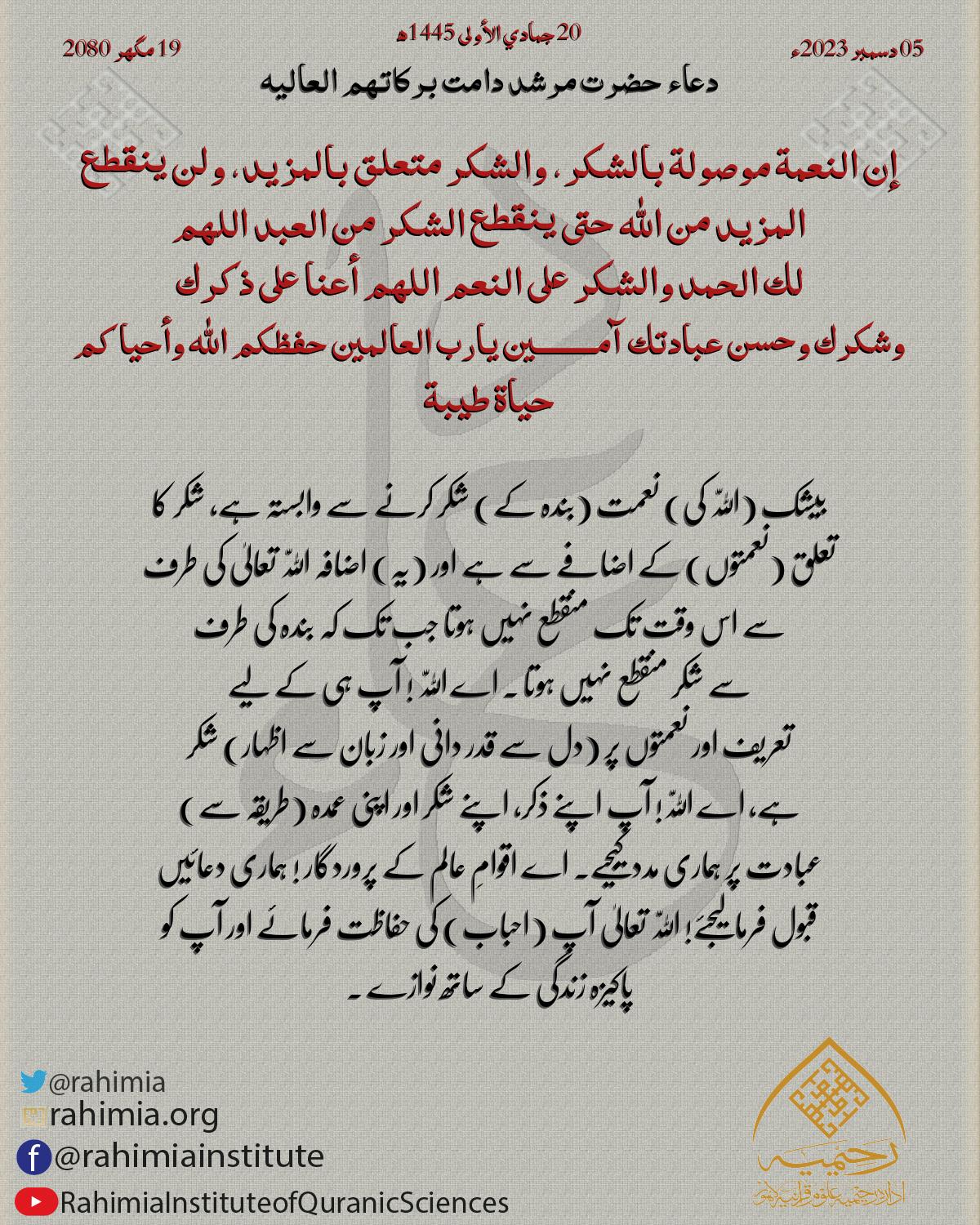 إن النعمة موصولة بالشكر، والشكر متعلق بالمزيد، ولن ينقطع المزيد من الله حتى ينقطع الشكر من العبد اللهم لك الحمد والشكر …