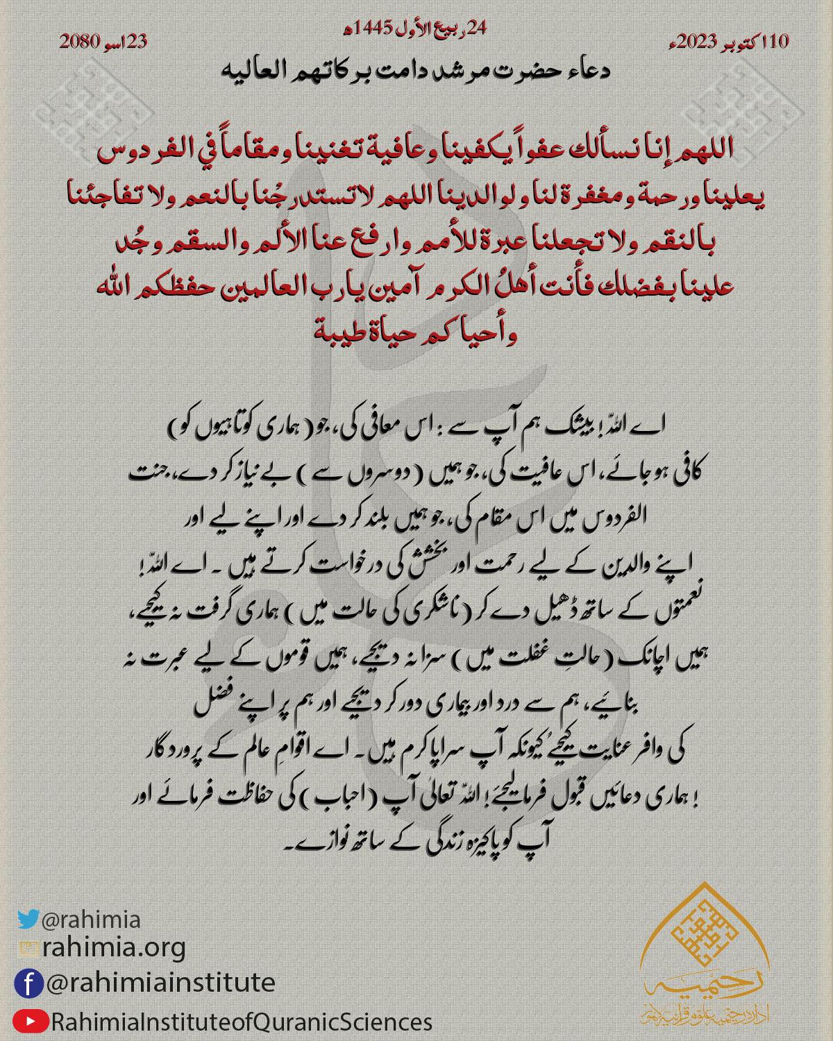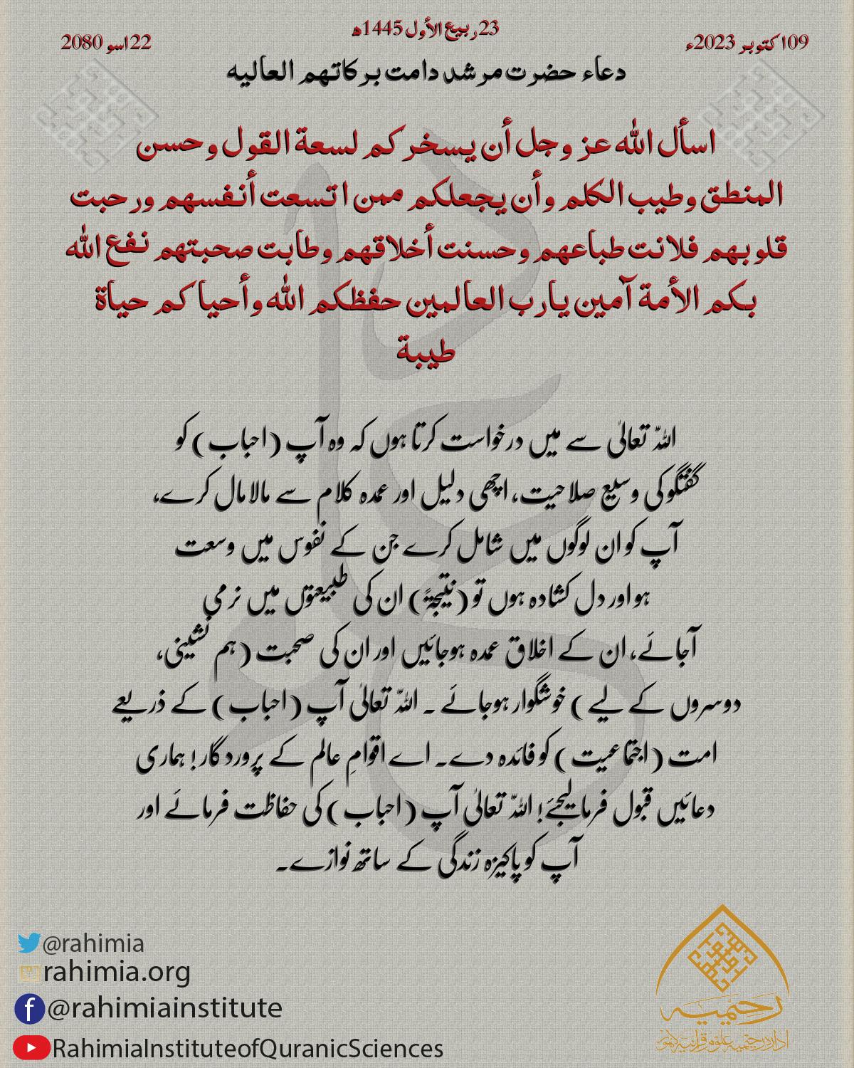 اسال الله تعالى ان يقسم لكم من محبته وخشيته وفضله ورزقه ماقسم لأوليائه الصالحين ، وان يؤتيكم الخير من كل مكان وان يفرج عنكم ماض…