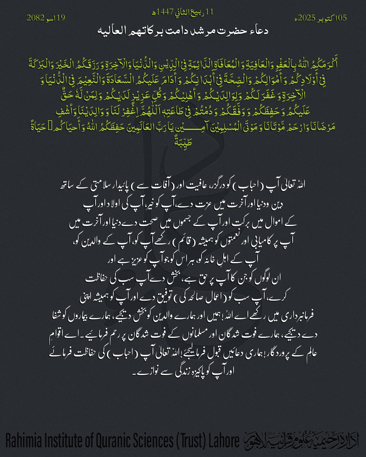 Daily Dua by Hazrat-e-Aqdas Molana Abdul Khaliq Azad R.A.