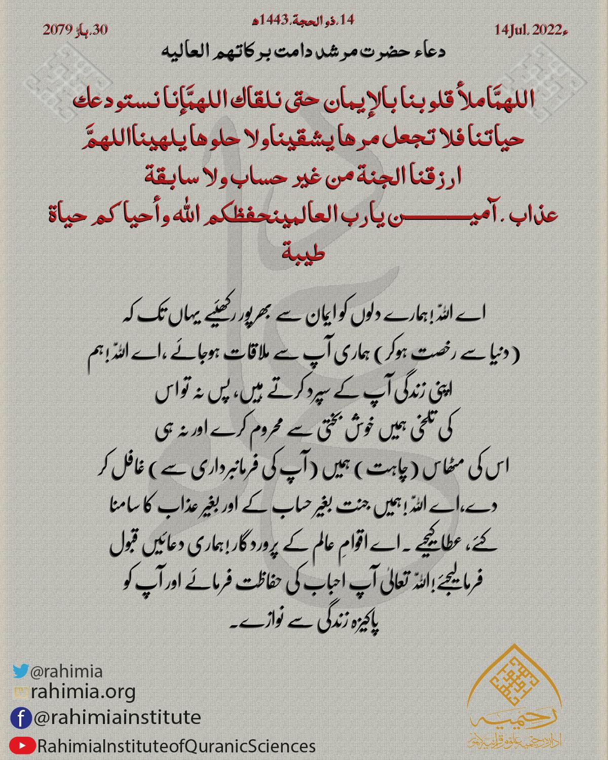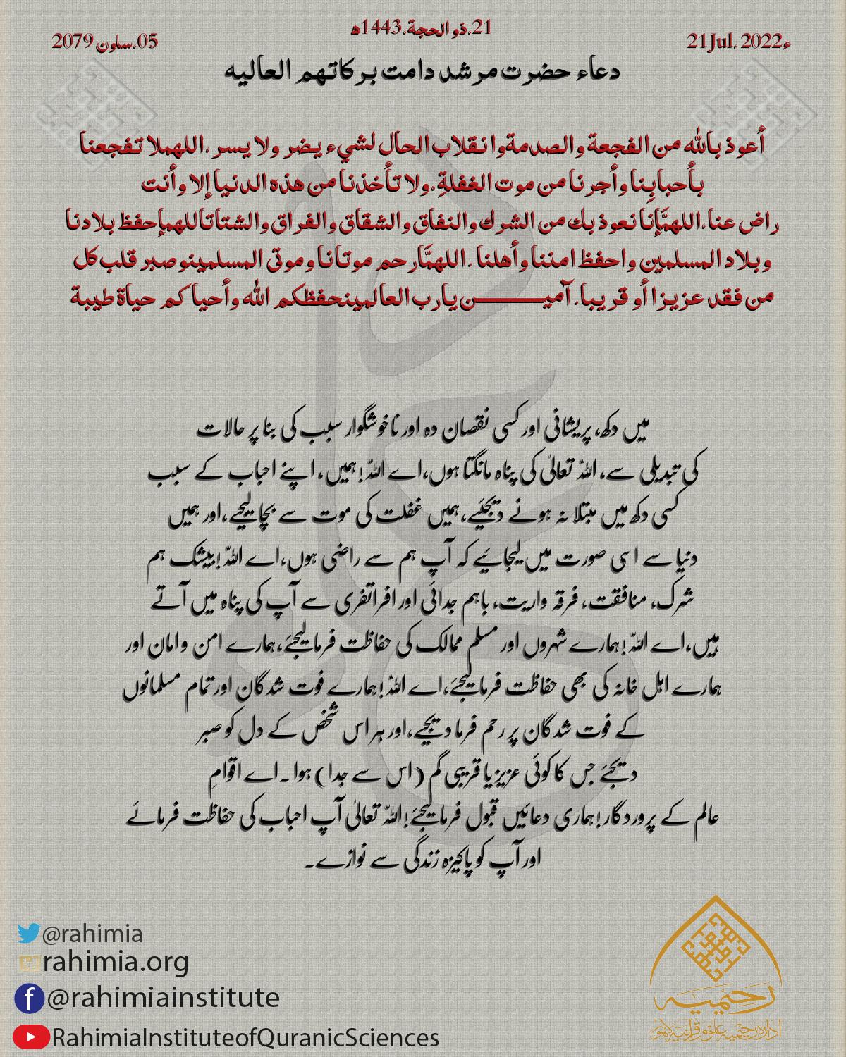 Daily Dua by Hazrat-e-Aqdas Molana Abdul Khaliq Azad R.A.