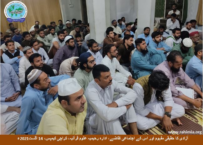 14 اگست 2021ء بروز ہفتہ ادارہ رحیمیہ علومِ قرآنیہ کراچی کیمپس میں "آزادی کا حقیقی مفہوم اور اس کے اجتماعی تقاضے" کے عنوان پر ایک سیمینار منعقد کیا گیا جس میں صدر ادارہ رحیمیہ علومِ قرآنیہ (ٹرسٹ) لاہور مولانا مفتی عبدالمتین نعمانی صاحب نے زیر عنوان موضوع پر راہنمائی فرمائی۔