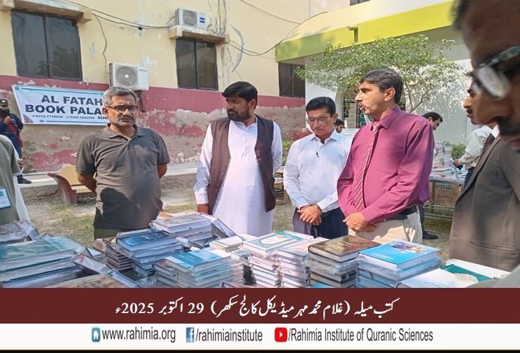 مورخہ 29 اکتوبر 2025ء بروز بدھ غلام محمد مہر میڈیکل کالج سکھر میں ایک دن کا کتاب میلا منعقد ہوا. جس میں غلام محمد مہر میڈیکل کالج کے اساتذہ ، طلباء و طالبات نے بڑی تعداد میں شرکت کی اور سکھر شہر کے ڈاکٹرز اور دیگر شعبہ جات سے وابستہ احباب نے بھی شرکت کی۔ اس کتب میلے میں ڈاکٹر سید ڈاکٹر لیاقت علی شاہ معصومی صاحب (مجاز حضرت اقدس رائے پوری رابعؒ) تشریف لائے اور دوستوں کی حوصلہ افزائی فرمائی۔ آپ نے ڈاکٹر سیدہ نصرت شاہ صاحبہ (وائس چانسلر شہید محترمہ بینظیر بھٹو میڈیکل یونیورسٹی) کو امام انقلاب مولانا عبیداللہ سندھی رحمۃ اللہ علیہ کی فکر انگیز کتاب شعورو آگہی بطور تحفہ دی۔