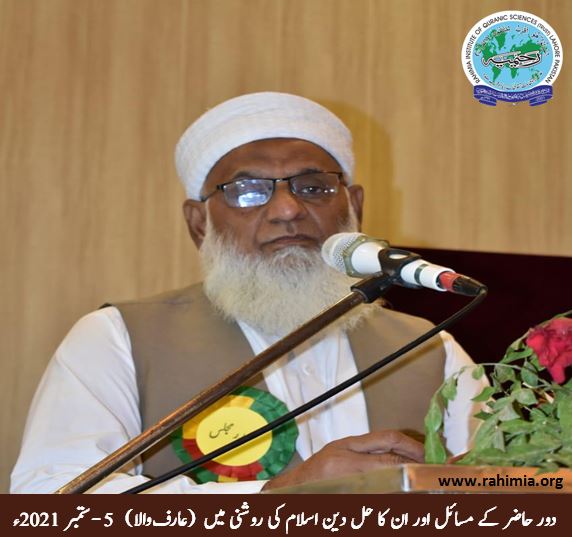 سیمینار کے موضوع " دور حاضر کے مسائل اور ان کا حل دین اسلام کی روشنی میں" پر خطاب کرتے ہوئے مولانا مفتی سعید الرحمن صاحب نے فرمایا،" ہمارا ملک پاکستان ایک خطے کے طور پر دنیا کے جغرافیہ پر موجود ہے لیکن غلام نظام کے سبب اقوام عالم کی ترقی کی صف میں کہیں نظر نہیں آتا۔ جب کہ پاکستان کے بعد آزادی حاصل کرنے والی کئی اقوام ترقی کے راستے کی صفِ اول میں کھڑی نظر آتی ہیں۔ تاریخی حقیقت یہ ہے کہ غلامی سے پہلے یہ خطہ معاشی طور پر زرخیز خطہ تھا۔ غلامی کے دور میں لڑاؤ اور حکومت کرو کی پالیسی جاری ہوئی"۔