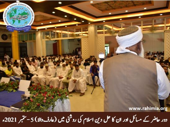 27 محرم الحرام 1443ھ بمطابق 5 ستمبر 2021ء بروز اتوار ادارہ رحیمیہ علوم قرآنیہ (ٹرسٹ) کے زیر اہتمام عارف والا میں ایک عمومی سیمینار منعقد ہوا۔ سیمینار کے مہمانِ خصوصی معروف علمی شخصیت ڈاکٹر مفتی سعید الرحمن ، سرپرست ادارہ رحیمیہ علوم قرآنیہ(ٹرسٹ) لاہور تھے جب کہ ممتاز عالم دین اور مجاز حضرت رائے پوری رابع (شاہ سعید احمد رائے پوری رح) ، حضرت مولانا مفتی عبدالمتین نعمانی، صدر ادارہ رحیمیہ علوم قرآنیہ(ٹرسٹ) لاہور نے سیمینار کی صدارت کی۔ اس سیمینار میں نظامت کےفرائض شاہد محمود نے ادا کئے جب کہ تلاوت قرآنِ حکیم کی سعادت حافظ عمر کے حصے میں آئی۔ نعت رسول مقبول ﷺ سلیم انجم نے پیش کی۔