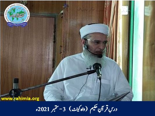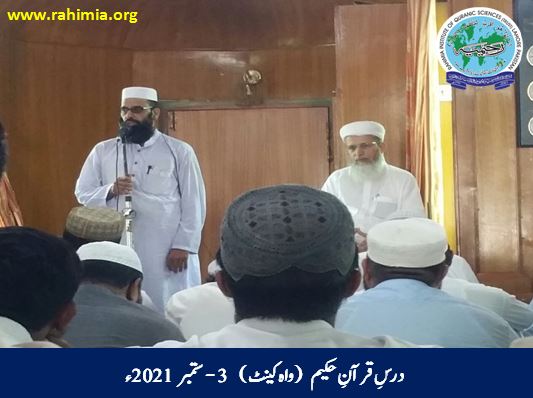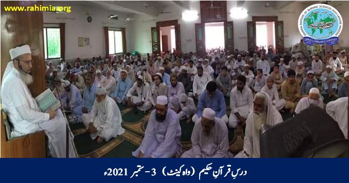 ادارہ رحیمیہ علوم قرآنیہ ٹرسٹ لاہور کے ڈائریکٹر ایڈمن مولانا مفتی مختار حسن مورخہ25 محرم الحرام 1443ھ مطابق 3 ستمبر 2021ء بروز جمعۃ المبارک مختصر دورے پر واہ کینٹ تشریف لائے۔ اس دوران واہ کینٹ کی "مسجد عائشہ" میں نمازِ جمعہ سے قبل قرآنِ حکیم کے 28 ویں پارے پر درس قرآن دیتے ہوئے فرمایا،