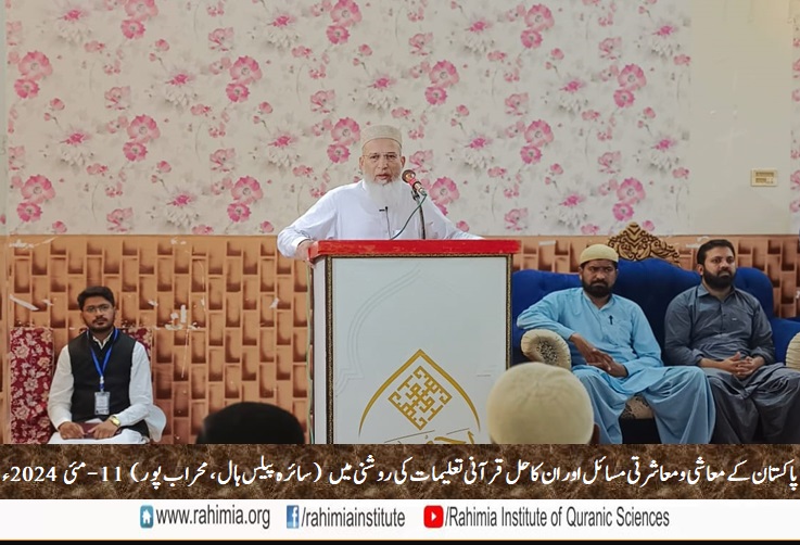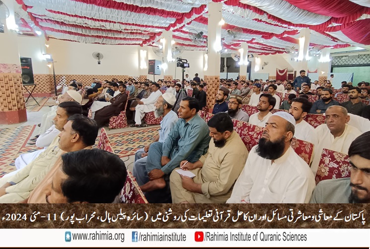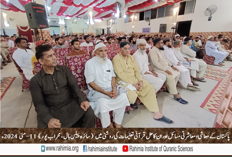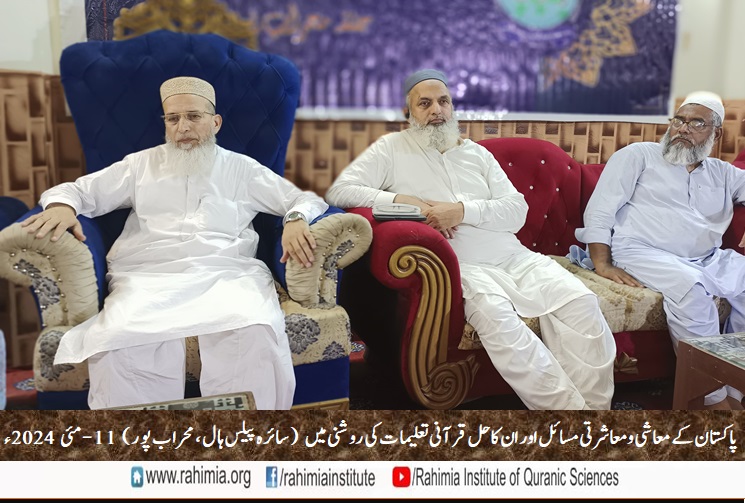 ادارہ رحیمیہ علوم قرآنیہ ٹرسٹ کی محراب پور شاخ کے زیر اہتمام 11 مئی 2024ء بروز ہفتہ ایک عظیم الشان سیمینار "پاکستان کے معاشی و معاشرتی مسائل اور ان کا حل قرآنی تعلیمات کی روشنی میں" کے عنوان سے سائرہ پیلس محراب پور میں منعقد ہوا۔ سیمینار کے مہمانِ خصوصی حضرت اقدس مولانا مفتی عبدالخالق آزاد رائے پوری مدظلہ العالی (مسند نشین خانقاہ عالیہ رحیمیہ رائے پور و ڈائریکٹر جنرل ادارہ رحیمیہ) اور مہمان اعزازی مولانا مفتی محمد مختار حسن (ڈائریکٹر ایڈمن،ادارہ رحیمیہ) اور ڈاکٹر راؤ عبد الرحمٰن (ڈپٹی ڈائریکٹر ایڈمن، ادارہ رحیمیہ) تھے۔