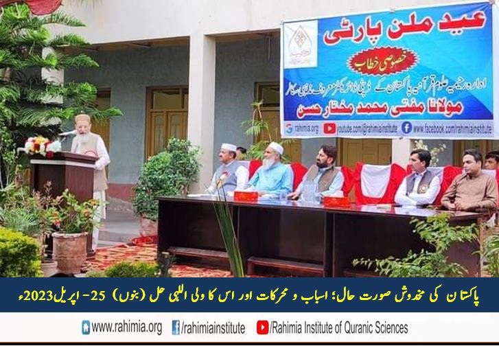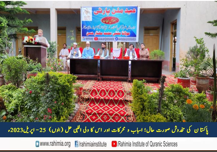ادارہ رحیمیہ علوم قرآنیہ ٹرسٹ لاہور کی بنوں شاخ کے زیراہتمام 25 اپریل 2023ء ایک پروقار عید ملن پارٹی بعنون "پاکستا ن کی مخدوش صورت حال؛ اسباب و محرکات اور اس کا ولی اللہی حل" کا اہتمام کیا گیا تھا جس کے مہمان خصوصی مولانا مفتی محمد مختار حسن (ڈائریکٹر ایڈمن ادارہ رحیمیہ علوم قرآنیہ) تھے۔
