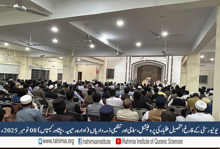 ادارہ رحیمیہ علومِ قرآنیہ ٹرسٹ پشاور کیمپس کے زیرِ اہتمام صوبہ خیبرپختونخوا کے مختلف اضلاع سے وابستہ یونیورسٹی کیمپس کے فارغ التحصیل تنظیمی احباب کے لیے ایک شعوری نشست کا انعقاد کیا گیا۔