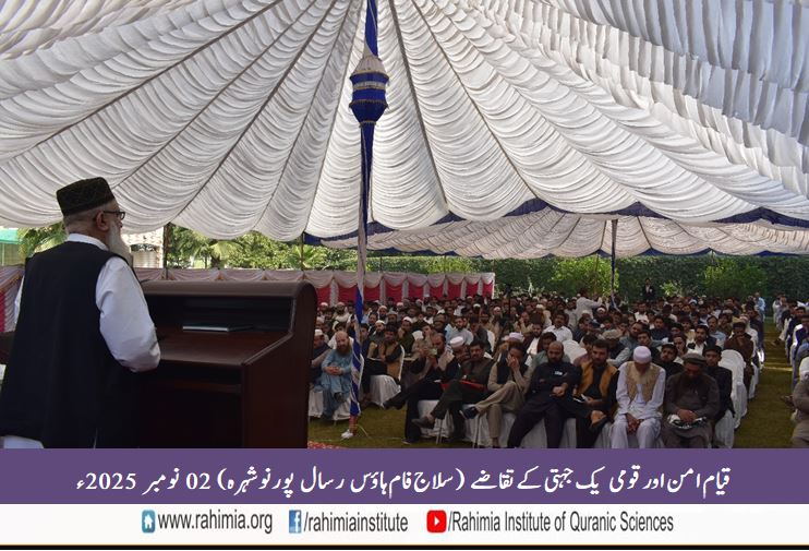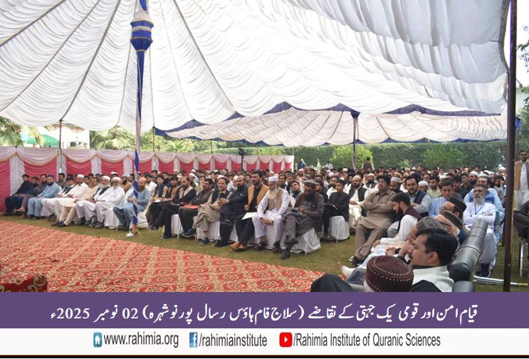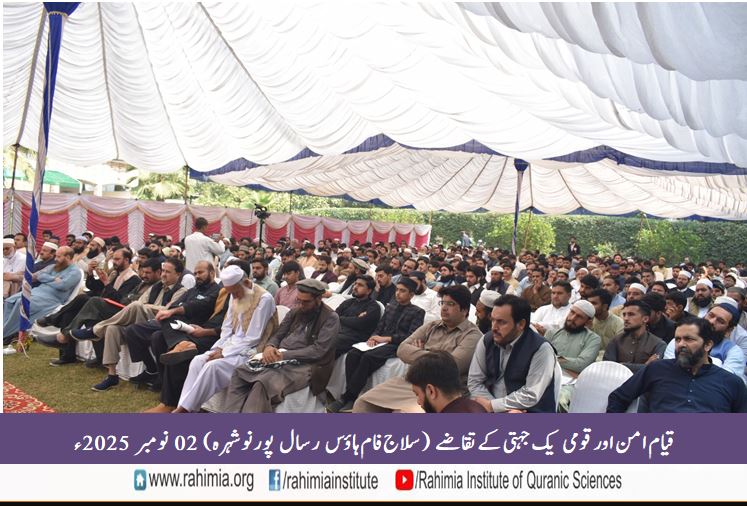 ادارہ رحیمیہ علوم قرآنیہ ٹرسٹ کے زیر انتظام سیرت طیبہ ﷺ کےعنوان سے ایک شعوری سیمینار بمقام سلاج فام ہاؤس رسال پور نوشہرہ مورخہ 2 نومبر 2025ء بروز اتوار منعقد ہوا۔ اس سیمینار کا عنوان "قیام امن اور قومی یک جہتی کے تقاضے" تھا۔
