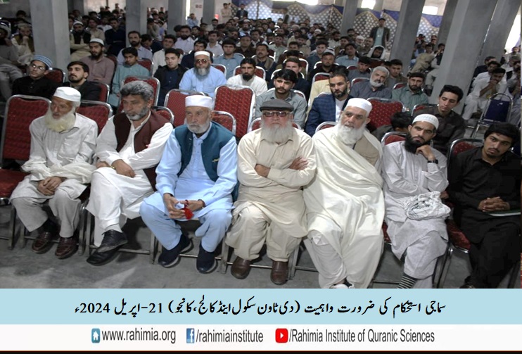 ادارہ رحیمیہ علومِ قرآنیہ کی کبل اور بانڈی شاخوں کا ایک مشترکہ دعوتی سیمینار بتاریخ 21اپریل 2024 ء بروز اتوار "دی ٹاون سکول اینڈ کالج کانجو"میں پروفیسر ریاض احمد کی زیر صدارت منعقد ہوا ۔ مولانا مفتی محمد مختار حسن (ڈائریکٹر ایڈمن ادارہ رحیمیہ) اس سیمینار کے مہمانِ خصوصی تھے۔