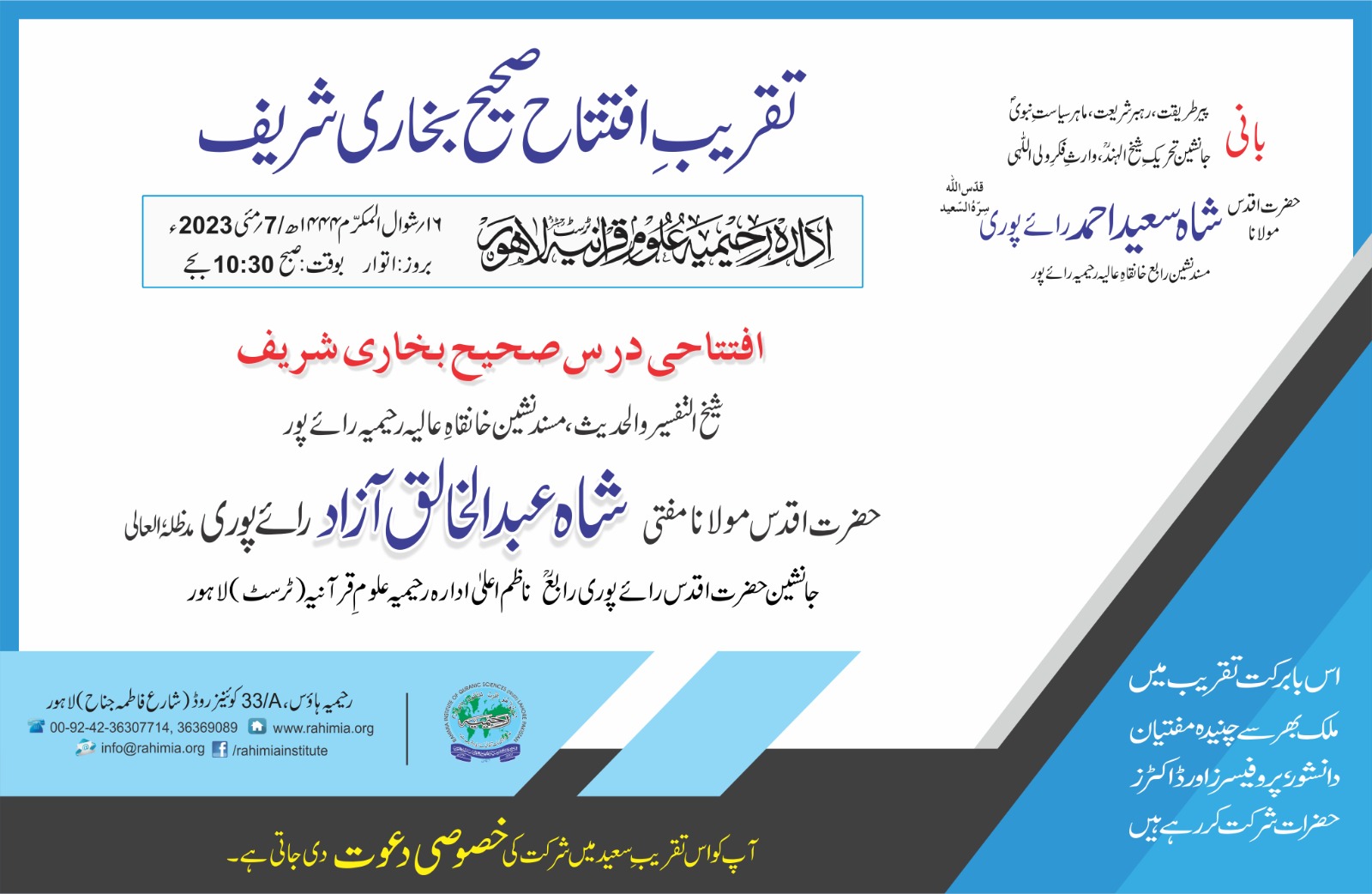 بمقام: ادارہ رحیمیہ علومِ قرآنیہ (ٹرسٹ) لاہور