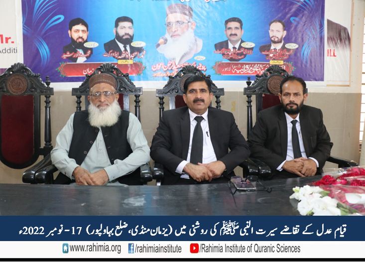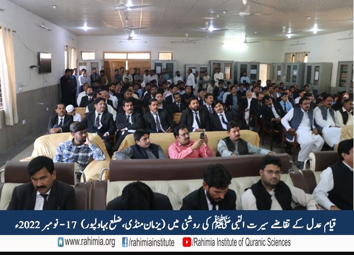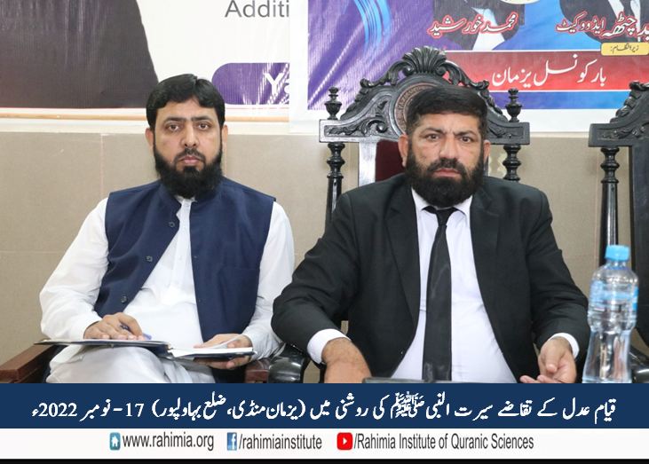 مورخہ 17 نومبر 2022ء بروز جمعرات ادارہ رحیمیہ علومِ قرآنیہ لاہور کے اشتراک سے تحصیل یزمان منڈی بار ایسوسی ایشن کے زیر اہتمام بار ہال میں "قیام عدل کے تقاضے ، سیرت النبی ﷺ کی روشنی میں" کے عنوان سے ایک سیمینار کا انعقاد ہوا، جس کے مہمانِ خصوصی پروفیسر ڈاکٹر مفتی سعید الرحمٰن (سرپرست ادارہ رحیمیہ علوم قرآنیہ(ٹرسٹ) لاہور) تھے۔ صدارت جناب ظفر اقبال چوہدری ایڈووکیٹ (صدر یزمان بار) نے کی۔ مہمان اعزازی چوہدری محمد اکرم گِل (جنرل سیکرٹری یزمان بار) تھے۔ ناظم تقریب کے فرائض ادارہ کے مقامی نمائندہ جناب محمد خورشید نے انجام دئیے۔ سیمینار میں وکلاء کی کثیر تعداد کے علاوہ مقامی طلبہ نے بھی شرکت کی ۔