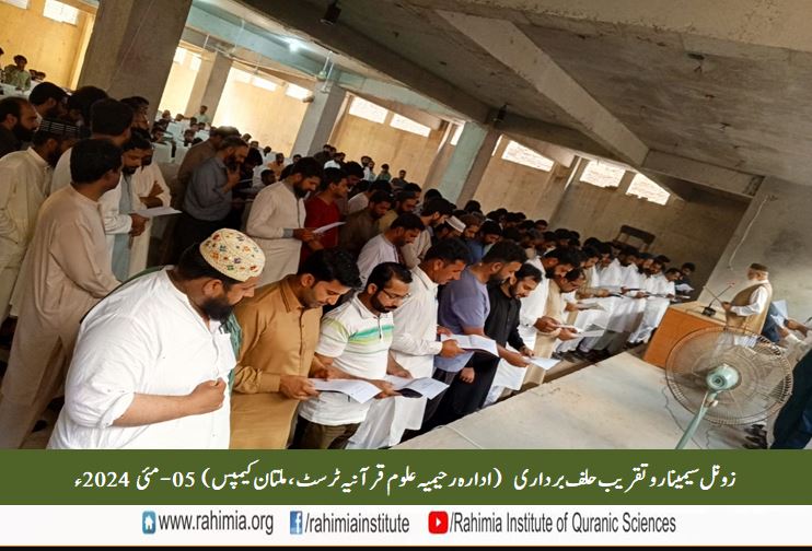 5 مئی بروز اتوار دوپہر 12:15 بجے حضرت اقدس مفتی عبد الخالق آزاد رائے پوری مدظلہ العالی (صدر نشین خانقاہ عالیہ رحیمیہ رائے پور و ناظم اعلیٰ ادارہ رحیمیہ علومِ قرآنیہ لاہور) نے ادارہ رحیمیہ ملتان کیمپس میں جاری زونل سیمینار برائے شرکاء علوم قرآنیہ کورس 2 اور کورس3 میں شرکت کی۔