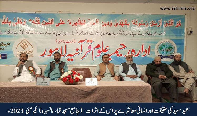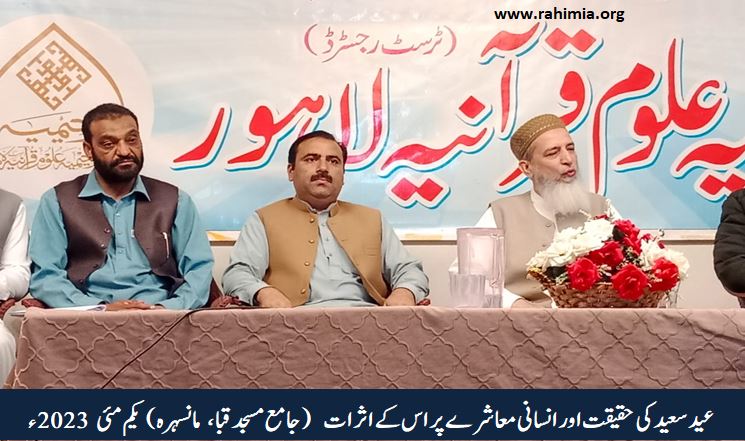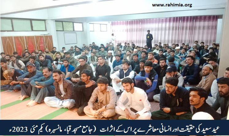 ادارہ رحیمیہ علوم قرآنیہ ٹرسٹ لاہور کی ہزارہ ریجن شاخ کے زیر اہتمام یکم مئی2023ء کو ایک پروقار عید ملن پارٹی کا انعقاد بعنوان" عید سعید کی حقیقت اور انسانی معاشرے پر اس کے اثرات" ہوا۔ جس کے مہمان خصوصی مولانا مفتی محمد مختار حسن ( ڈائریکٹر ایڈمن ادارہ رحیمیہ علوم قرآنیہ) تھے۔