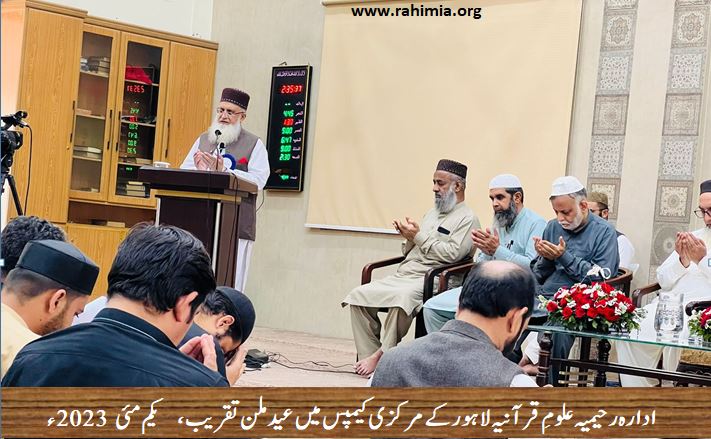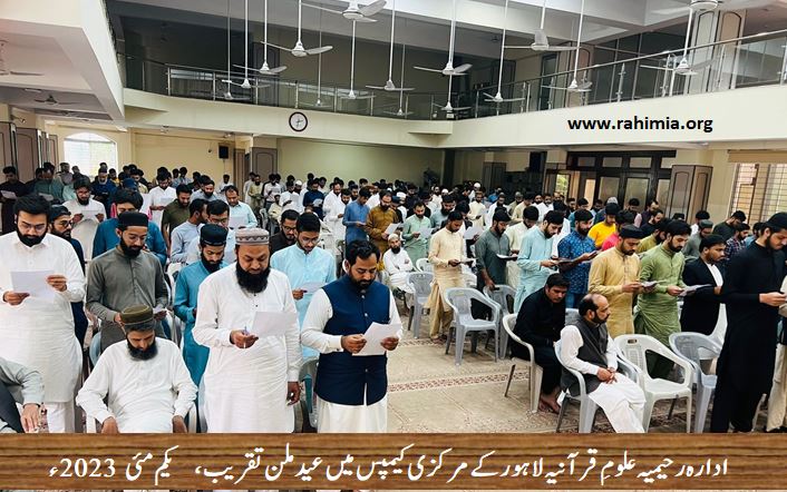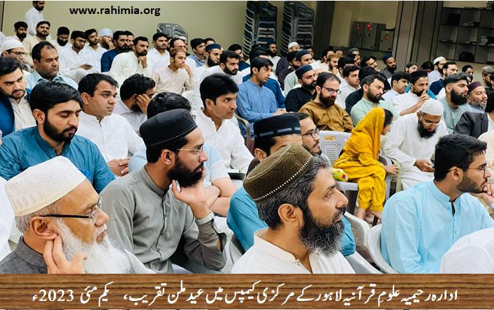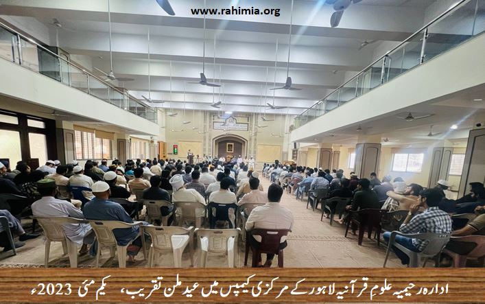 یکم مئی 2023 بروز سوموار کو ادارہ رحیمیہ علومِ قرآنیہ ٹرسٹ لاہور کے مرکزی کیمپس لاہور میں لاہور شرقی ریجن اور غربی ریجن کے زیر اہتمام عیدالفطر کی مناسبت سے عید ملن کی تقریب کا اہتمام کیا گیا ۔ تقریب کی صدارت شہزاد احمد شاہ (صوبائی کوۤرڈینیٹر صوبہ پنجاب) نے کی جب کہ ناظم اجلاس کے فرائض ڈاکٹررشید احمد چودھری (صوبائی ڈپٹی کوآرڈینیٹر) نے سر انجام دیے۔ تقریب کے مہمان خصوصی ڈائریکٹر جنرل ادارہ رحیمیہ علوم قرآنیہ لاہور و مسند نشیں خانقاہ عالیہ رحیمیہ رائے پور حضرت اقدس مفتی عبدالخالق آزاد رائے پوری تھے۔
