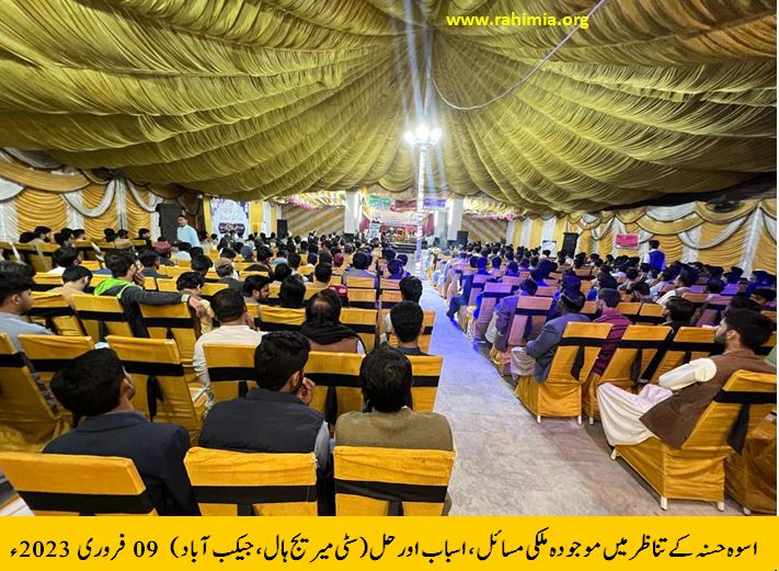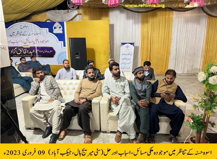 اس سیمینار میں شہر کے مختلف مکاتب فکر کے لوگوں کے ساتھ ساتھ جیکب آباد سے ملحقہ آبادیوں سے نوجوانوں نے بھی شرکت کی۔ آخر میں حضرت اقدس نے دعاءِ خیر سے پروگرام کی تکمیل کی۔