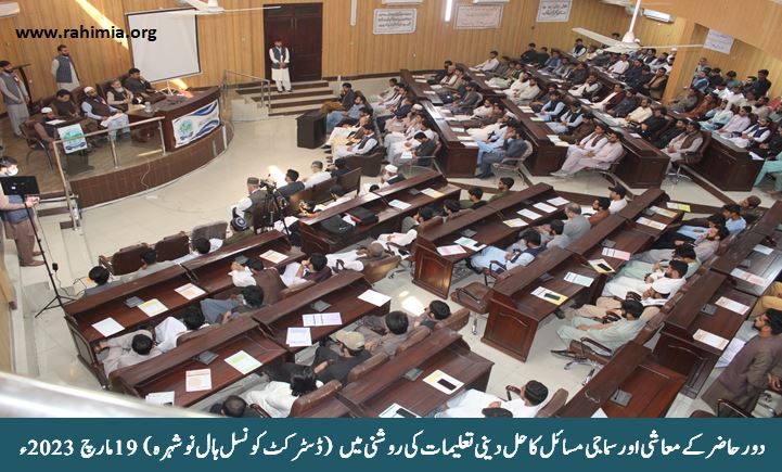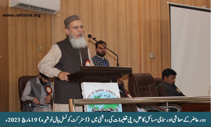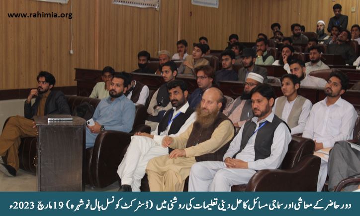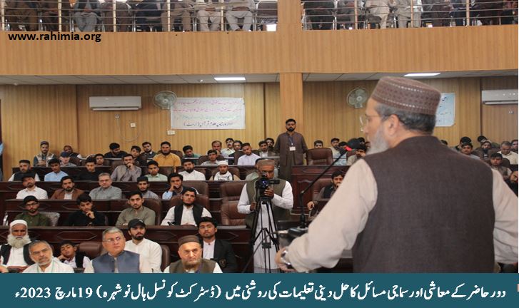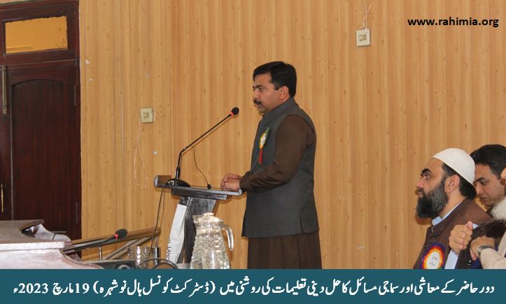 ادارہ رحیمیہ علوم قرآنیہ ( ٹرسٹ ) لاہور کی نوشہرہ شاخ کے زیر اہتمام ڈسٹرکٹ کونسل ہال نوشہرہ میں ایک شعوری سیمینار کا انعقاد کیا گیا۔ "دور حاضر کے معاشی اور سماجی مسائل کا حل دینی تعلیمات کی روشنی میں" سیمینار کا مرکزی موضوع تھا۔