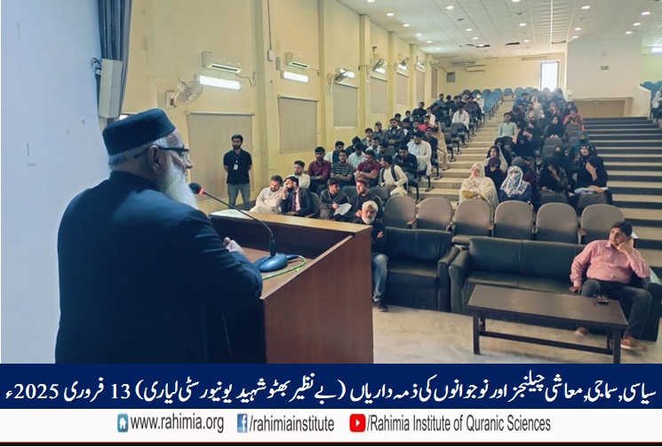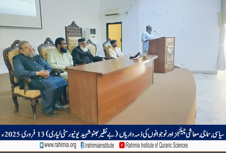 ادارہ رحیمیہ علوم قرانیہ ٹرسٹ لاہور اور بے نظیر بھٹو شہید یونیورسٹی لیاری کے باہمی اشتراک سے ایک شعوری سیمینار مورخہ 13 فروری 2025ء بروز جمعرات منعقد کیا گیا۔ سیمینار کا موضوع "سیاسی سماجی معاشی چیلنجز اور نوجوانوں کی ذمہ داریاں" تھا۔ سیمینار کے مہمان خصوصی صدر ادارہ رحیمیہ مفتی عبدالمتین نعمانی صاحب اور مہمانِ اعزازی پروفیسر امجد علی آرائیں تھے۔ صدارت اسسٹنٹ پروفیسر مذکورہ یونیورسٹی جناب عبدالرحیم شر صاحب نے فرمائی۔