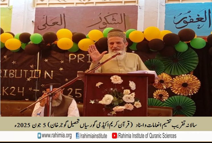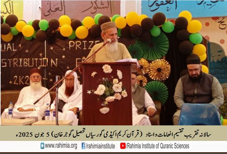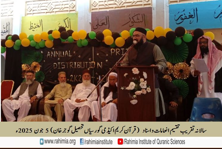 مورخہ 5 جون 2025ء بروز جمعرات قرآن کریم اکیڈمی گورسیاں تحصیل گوجر خان کی سالانہ تقریب تقسیم انعامات و اسناد منعقد ہوئی۔ اس تقریب کے مہمان خصوصی