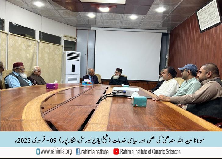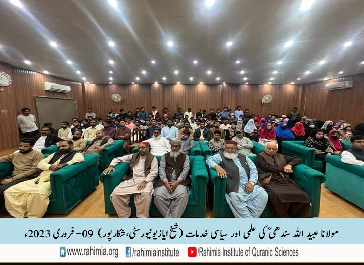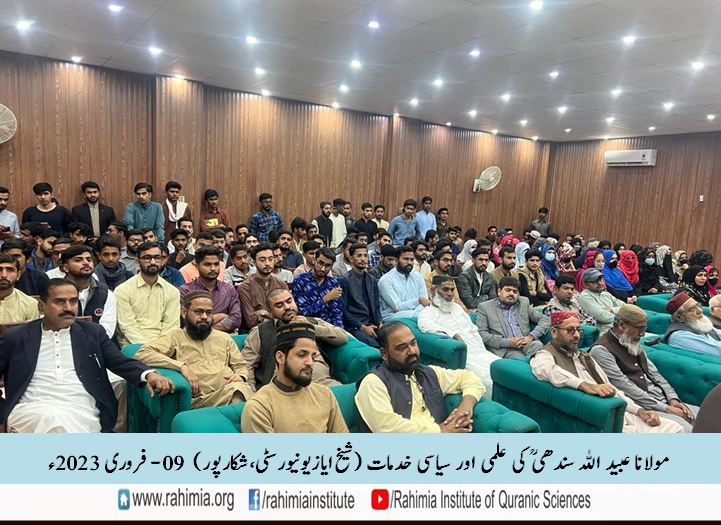 بتاریخ 9 فروری 2023ء بروز جمعرات شیخ ایاز یونیورسٹی شکارپور میں "امامِ انقلاب حضرت مولانا عبید اللہ سندھیؒ کی علمی اور سیاسی خدمات" کے تناظر میں ایک سیمینار کا انعقاد کیا گیا۔ سیمینار کے مہمانِ خصوصی ادارہ رحیمیہ علومِ قرآنیہ کے ڈائریکٹر جنرل حضرت مفتی عبدالخالق آزاد رائے پوری صاحب تھے۔ ناظم اجلاس کے فرائض کامران پھلپوٹو صاحب نے ادا کئے جب کہ تلاوتِ قرآنِ حکیم کی سعادت حافظ نور الدین نے حاصل کی۔