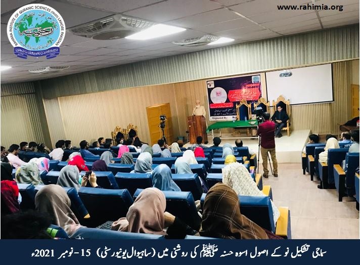 مندرجہ بالا سیمینار میں صدر نشین خانقاہ عالیہ رحیمیہ رائے پور حضرت مفتی عبدالخالق آزاد رائے پوری نے بطور مہمانِ خصوصی شرکت فرمائی اور عنوان بالا پر طلباء وطالبات کی راہنمائی فرمائی۔ آپ کے ہم راہ ڈائریکٹر ایڈمن مفتی محمد مختار حسن صاحب بھی تھے۔ اس پروگرام کی صدارت شبیر صاحب نے کی اور تلاوت کی سعادت خبیب صاحب نے حاصل کی جبکہ نظامت کے فرائض ہارون رشید صاحب نے نبھائے۔