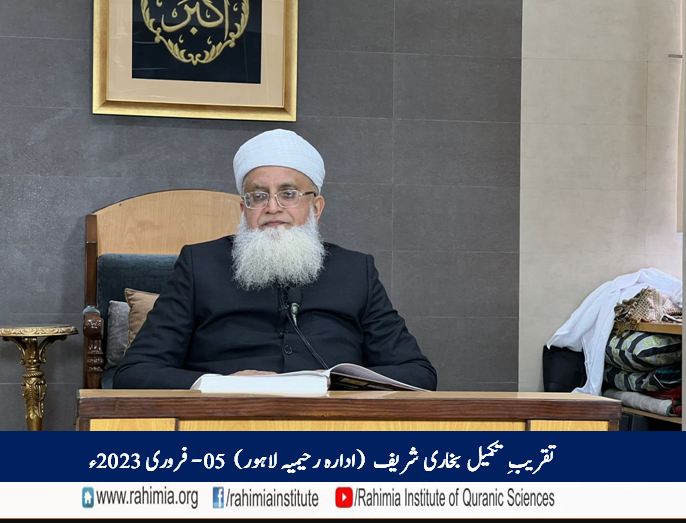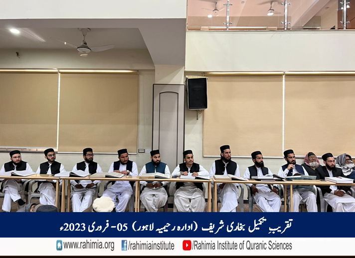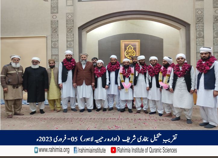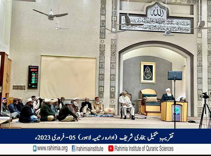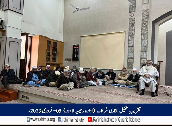 مورخہ 13 رجب المرجب 1444ھ / 5 فروری 2023ء بروز اتوار کو ادارہ رحیمیہ علومِ قرآنیہ (ٹرسٹ) لاہورمیں دورہ حدیث شریف کے تعلیمی سال کے اختتام کے موقع پر صحاح ستہ کی اہم ترین کتاب ”صحیح بخاری شریف“ کی تکمیلی تقریب منعقد ہوئی۔ اس موقع پر ادارہ میں دورۂ حدیث شریف کے طلباء کا صحیح بخاری شریف کا آخری سبق ہوا.