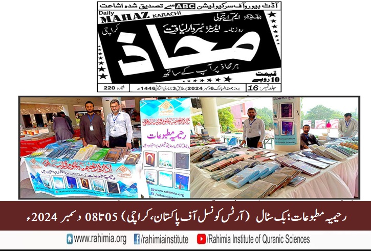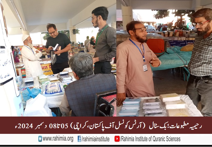 چار روزہ سترھویں عالمی اردو کانفرنس 2024ء (5 دسمبر تا 8 دسمبر) کا انعقاد آرٹس کونسل آف پاکستان کراچی میں ہوا۔ جس میں مختلف پروگرامز کے علاوہ ایک کتب میلے کا بھی انعقاد کیا گیا تھا۔ اس کتب میلے میں ملک بھر سے نام ور پبلشرز نے شرکت کی۔ اس چار روزہ بک فئیر میں ہزاروں لوگوں نے شرکت کی اور علمی وادبی کتابوں میں گہری دل چسپی کا اظہار کیا۔ اس بک فیئر میں رحیمیہ انسٹی ٹیوٹ آف قرآنک سائنسز (ٹرسٹ) لاہور کی جانب سے رحیمیہ مطبوعات کا اسٹال خاص توجہ کا مرکز رہا۔ شرکاء نے رحیمیہ مطبوعات کی کتب کو نہایت پسند کیا اور انہیں خصوصی رعایتی قیمتوں پر خریدنے کا موقع حاصل کیا۔ رحیمیہ مطبوعات کی کتب میں قرآنک سائنسز، اسلامی تاریخ، اور دیگر علمی موضوعات پر مبنی کتابیں شامل تھیں، جو شرکاء کے لیے خصوصی توجہ کا باعث بنیں۔ بک فیئر کے دوران لوگوں نے نہ صرف اپنی پسندیدہ کتب حاصل کیں بلکہ علم و تحقیق کے میدان میں رحیمیہ انسٹی ٹیوٹ کے کردار کی بھی بھرپور تعریف کی۔ طلباء و طالبات، علماء، پروفیسرز، ڈاکٹرز، قانون دان، تجزیہ نگاروں اور زندگی کے مختلف شعبوں سے تعلق رکھنے والے لوگوں نے رحٰمیہ مطبوعات سے متعلق اپنے تاثرات بھی قلم بند کئے۔